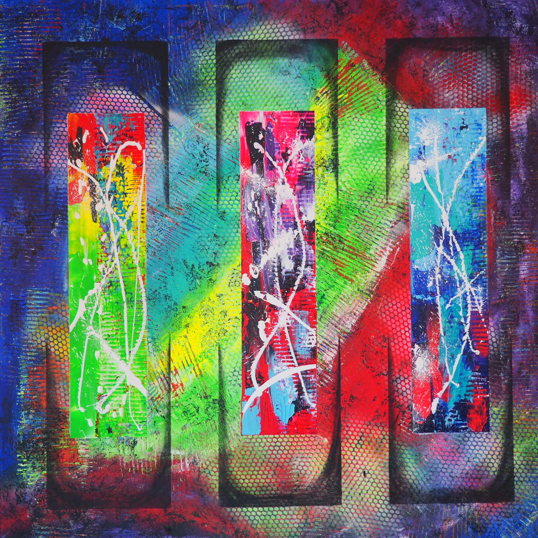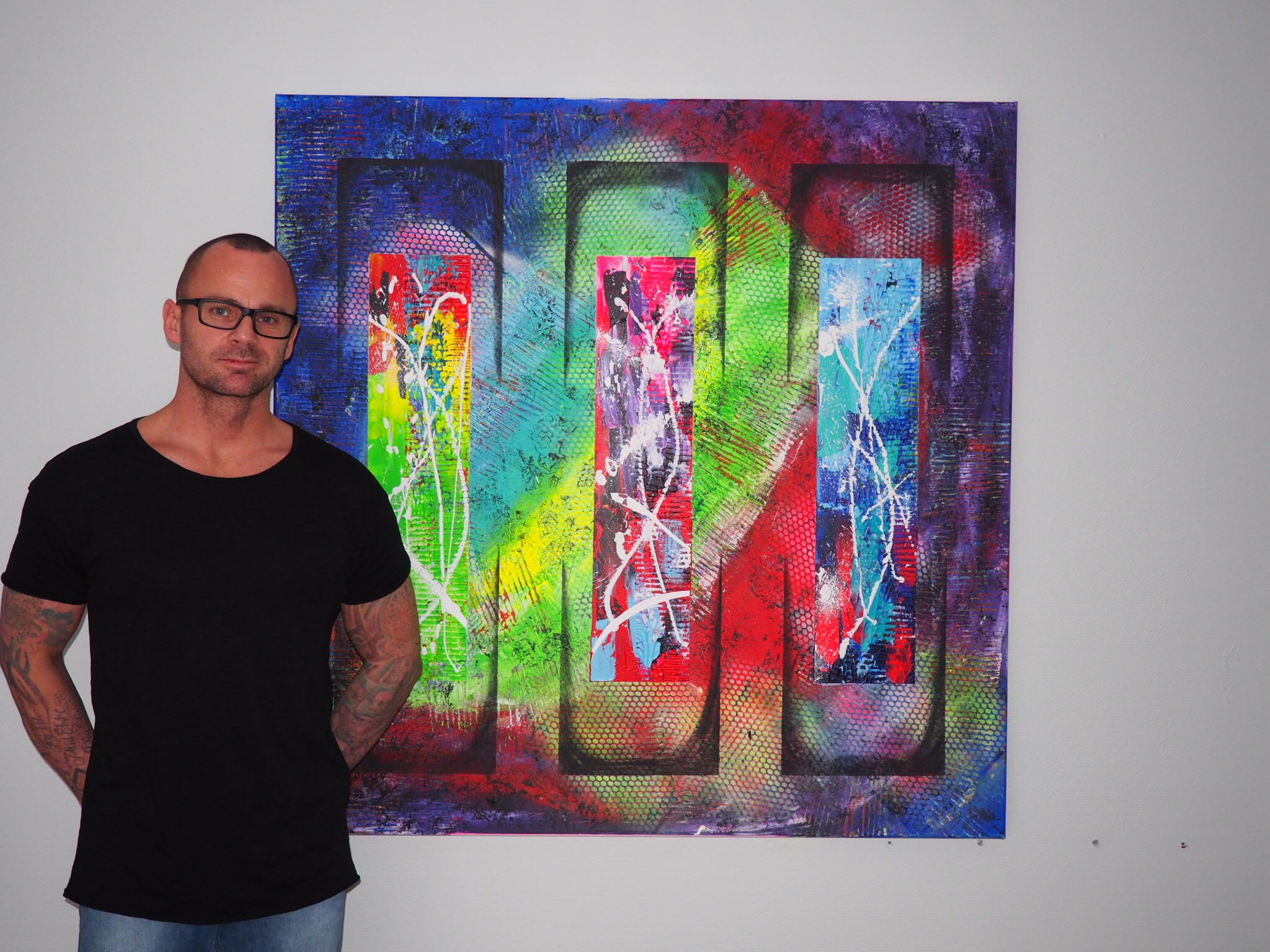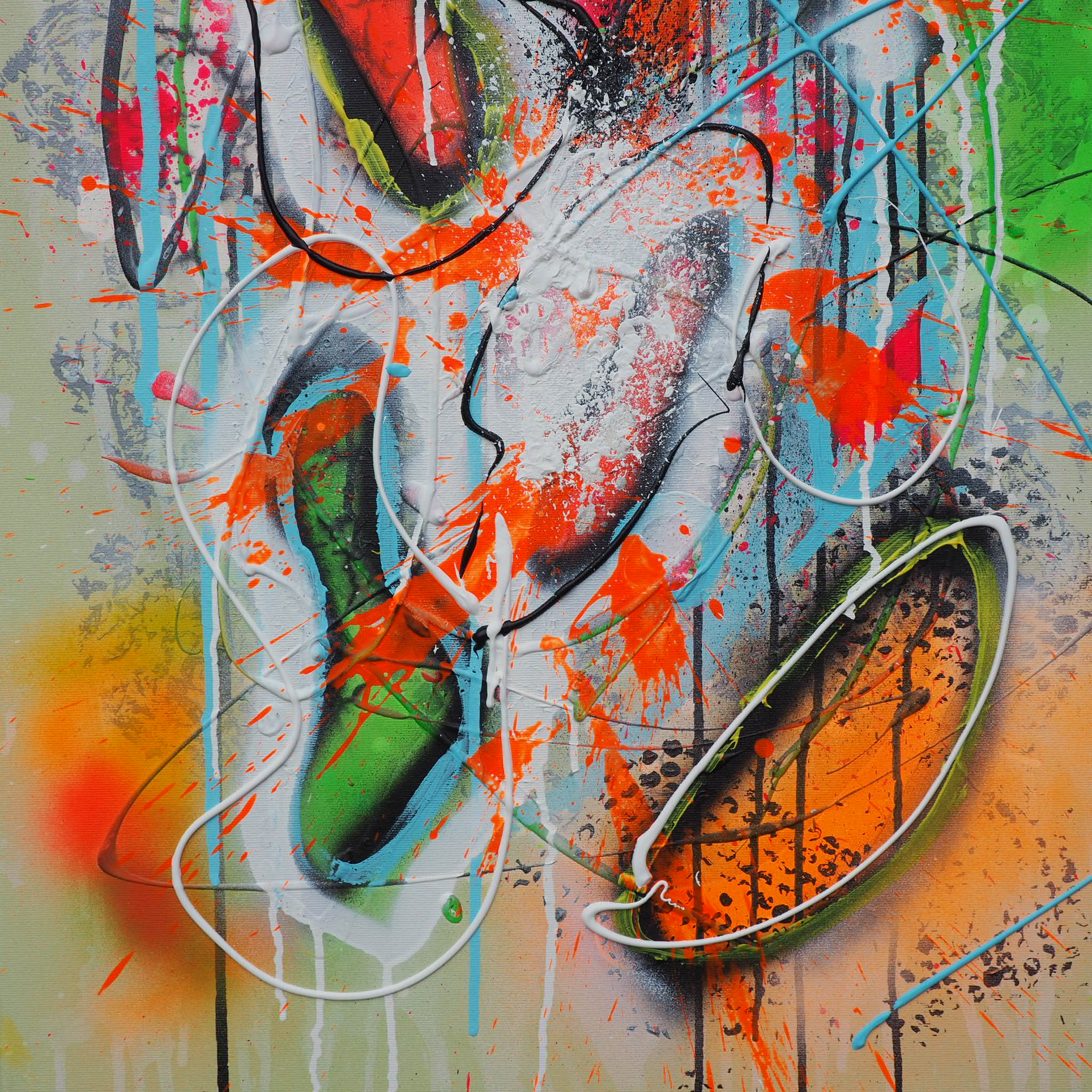 Jeg har aldrig været god til at holde mig indenfor rammerne igennem livet. Jeg synes det er kedeligt og demotiverende ikke at må og kunne overskride grænser. Stille spørgsmålstegn og provokere lidt indimellem for at fremtrylle folks virkelige jeg. Med det abstrakte er her ingen grænser. Jo mere du overskrider dem, jo federe bliver malerierne.