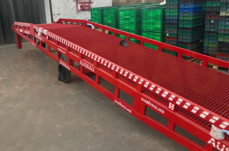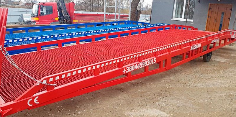 Fremragende mobil læsserampe AUSBAU direkte fra producenten. Standard modeller med belastningskapacitet på op til 6, 8, 10, 12 tons og mere. Vi tilbyder læsseramper ex-works (direkte fra producenten) i alle dimensioner du ønsker. Justerbar i højden fra 900 til 1650 mm ved hjælp af hydrauliske cylindre. Giver en betydelig tidsbesparelse under på- og aflæsning af lastbiler og/eller togvogne. Kan nemt flyttes takket være de indbyggede automotive hjul. Vejrbestandig: de mobile læsseramper AUSBAU fungerer godt under alle vejrforhold. I løbet af over 10 år har vi leveret vores produkter til mere end 25 lande verden over, herunder EU-landene. Læs mere om mobile læsseramper på vores websted av-exim.com id:hJfLsX