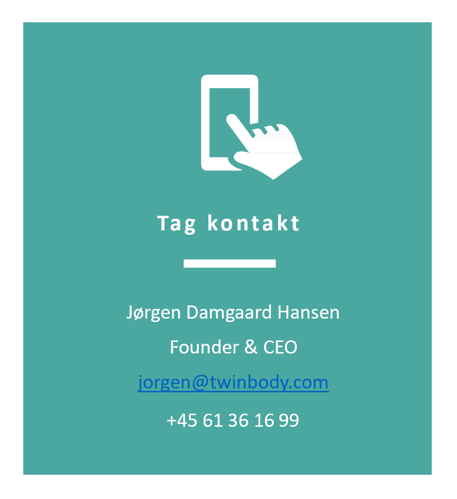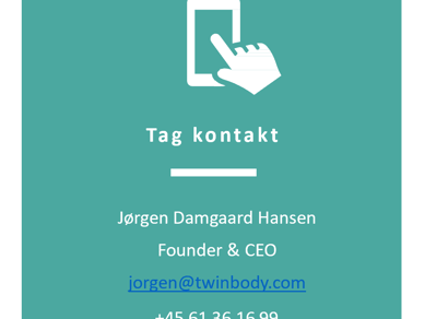 For en grundig gennemgang af bruger data samt Twinbody's selskab: Tag venligst kontakt og arranger en gennemgang via online video konference eller møde.