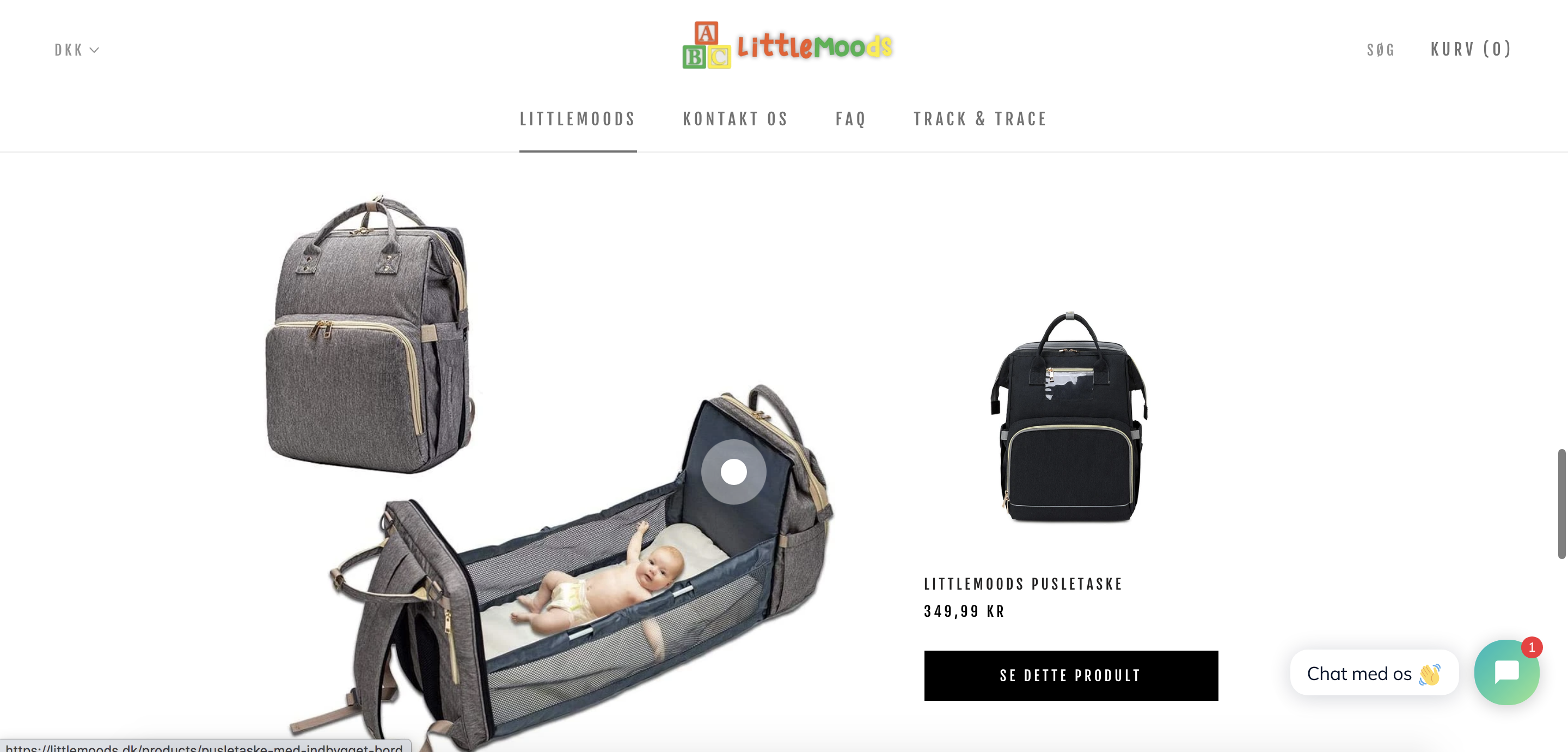 Littlemoods.dk sælger en pusletaske & puslebord i en.