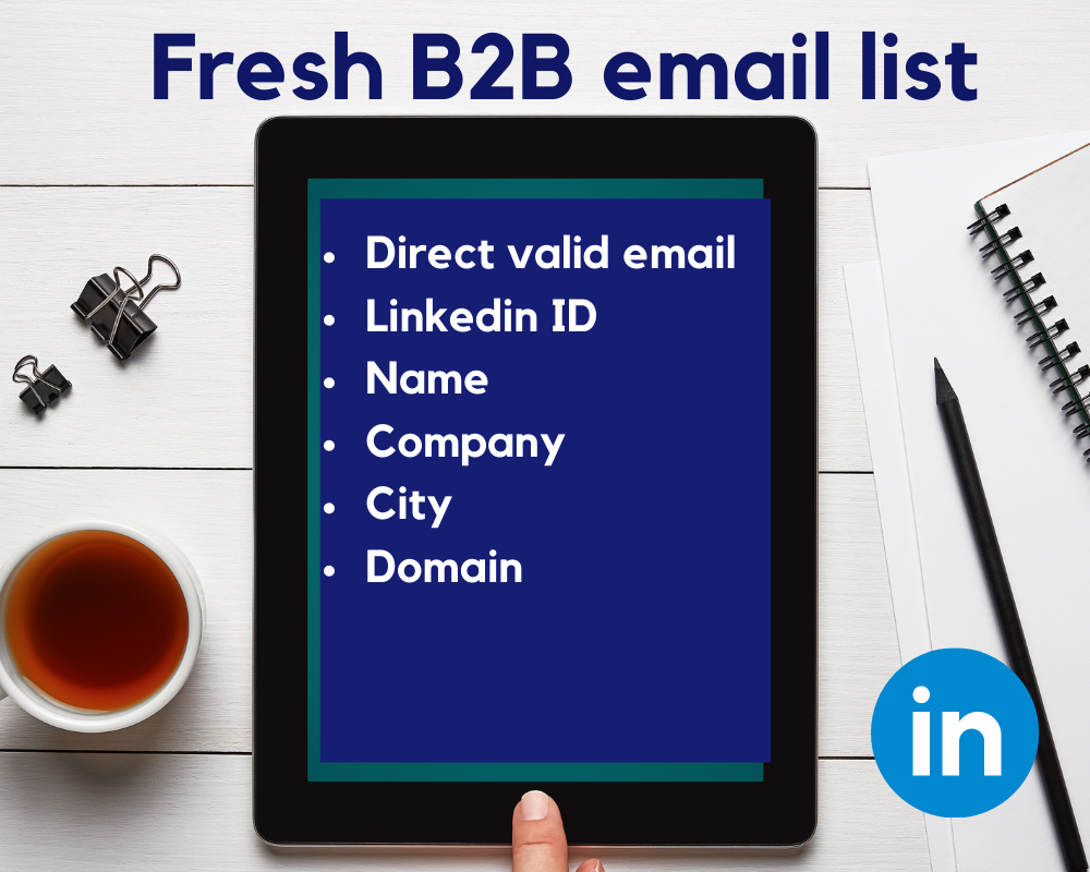 - Lead Generation: Skal du ind på et nyt marked er der brug for en B2B liste over personer du gerne vil i kontakt med via email. Vi finder via Linkedin de kontakter der matcher dine søgninger og filtrer samt finder og validater emails. Priser ligger på ca 1 kr per email. Mest brugbart hvis du skal ind på det asiatiske eller USA marked. Kan også bruges til at finde leverandører.