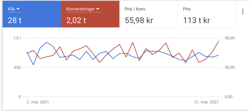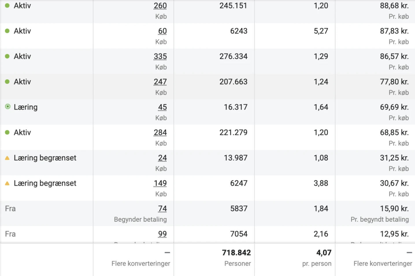 Det koster os ca 100,- pr salg igennem salg på FB/IG/GOOGLE og fortjenesten ligger på 300-700,- i profit pr. salg.