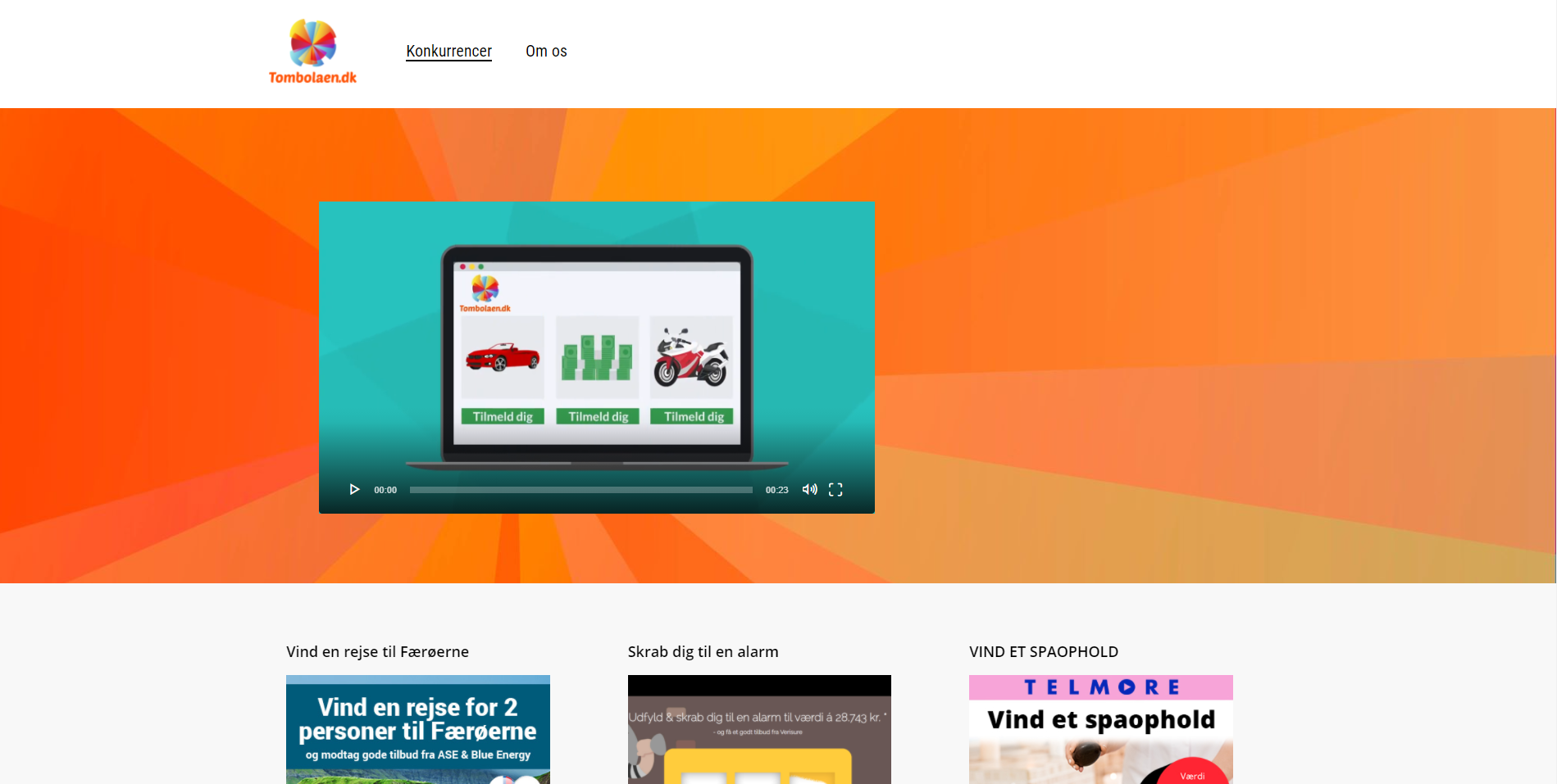 Tombolaen.dk er en hjemmeside som viser brugeren de forskellige konkurrencer som andre virksomheder har lige nu. Når en bruger tilmelder sig en konkurrence får du et sted mellem 10-25 DKK