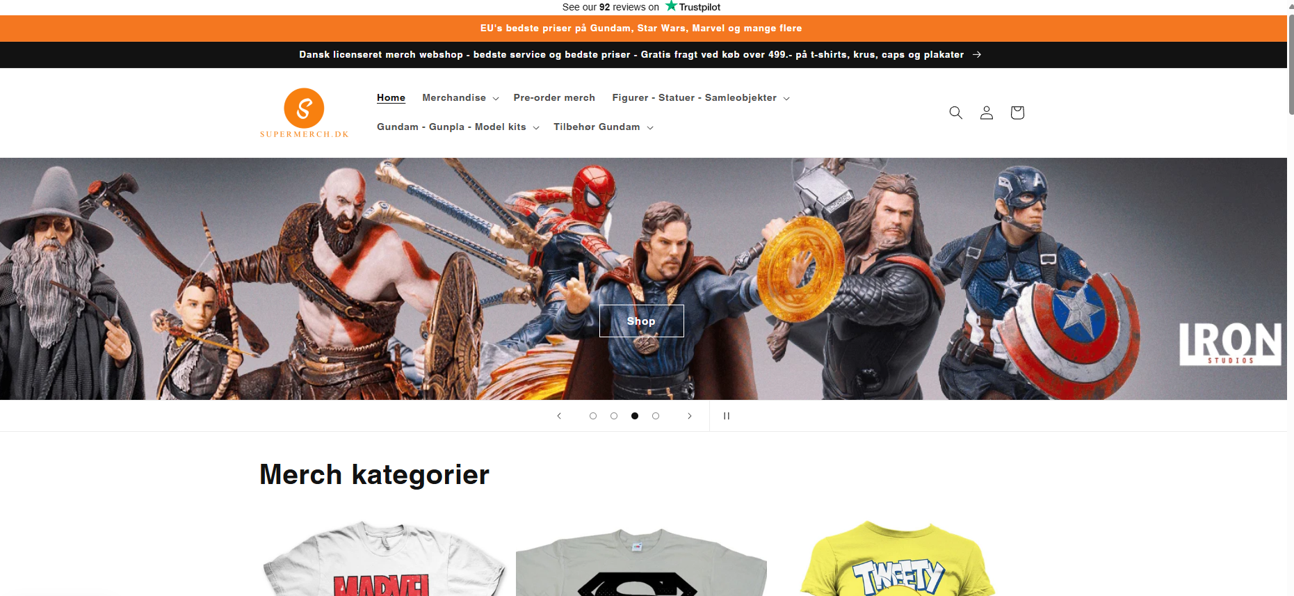 Webshoppen sælger licenseret merchandise, alt fra t-shirts, statuer, action figurer, gundam, Funko Pop, plakater og meget mere.