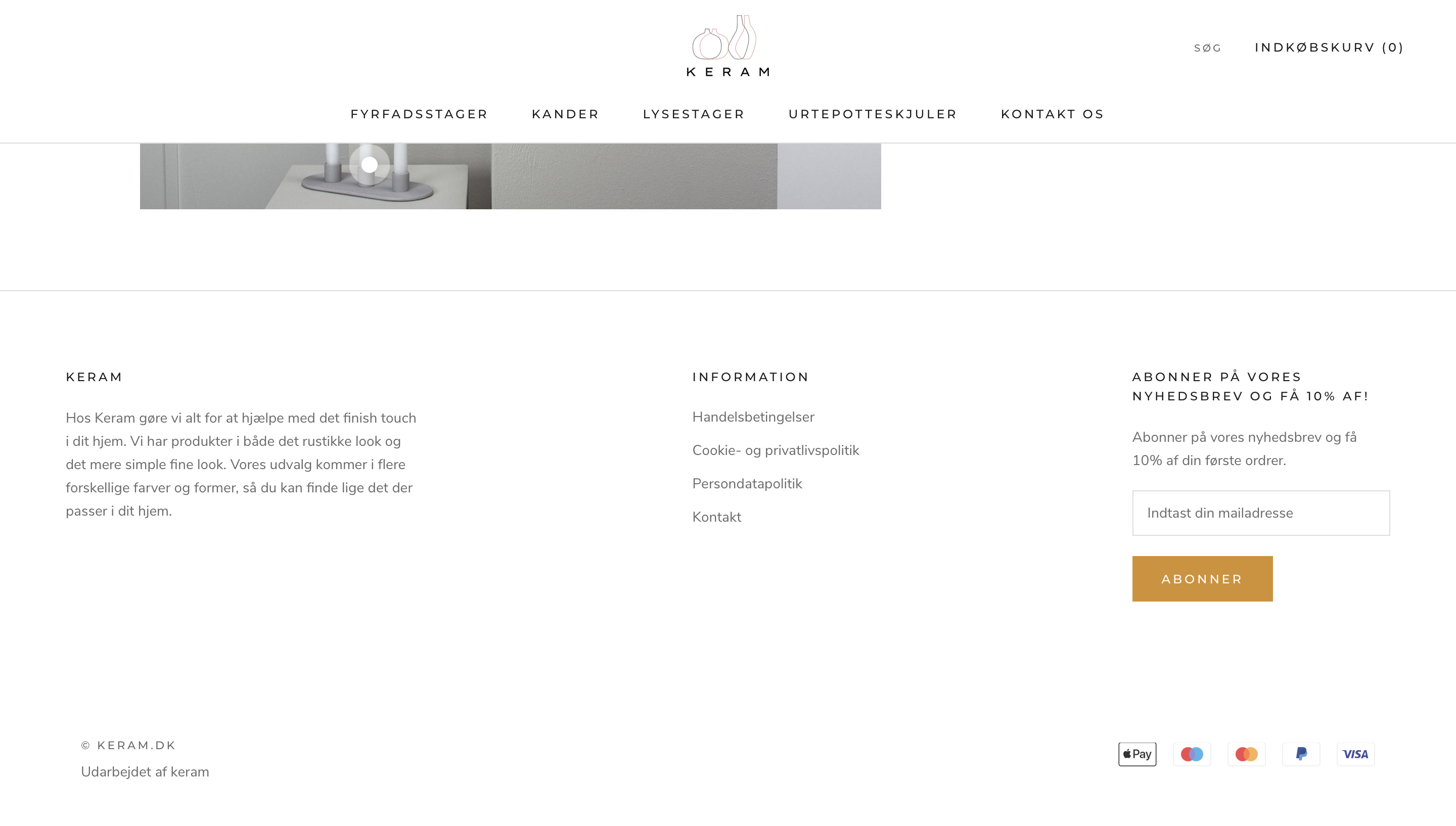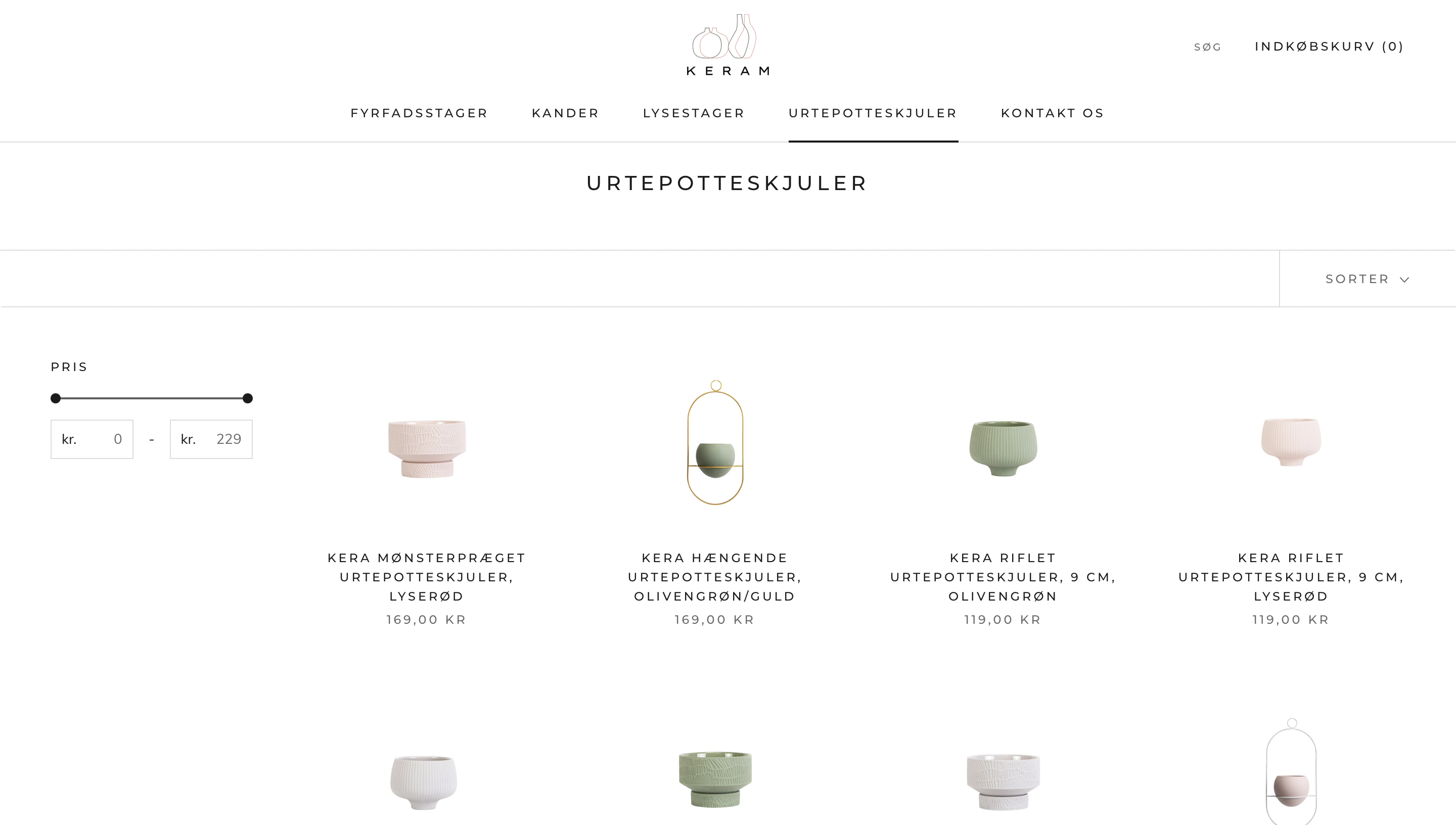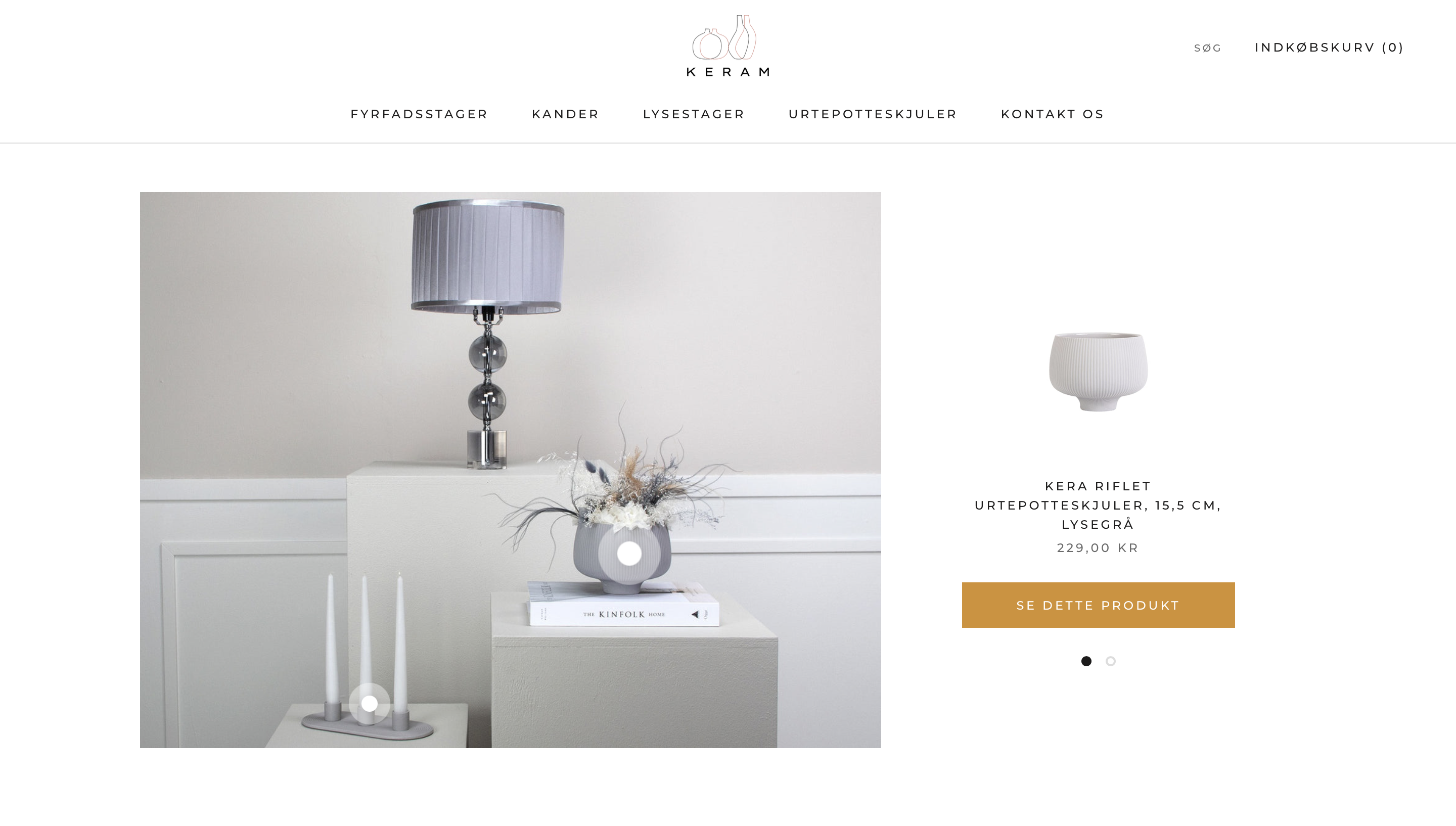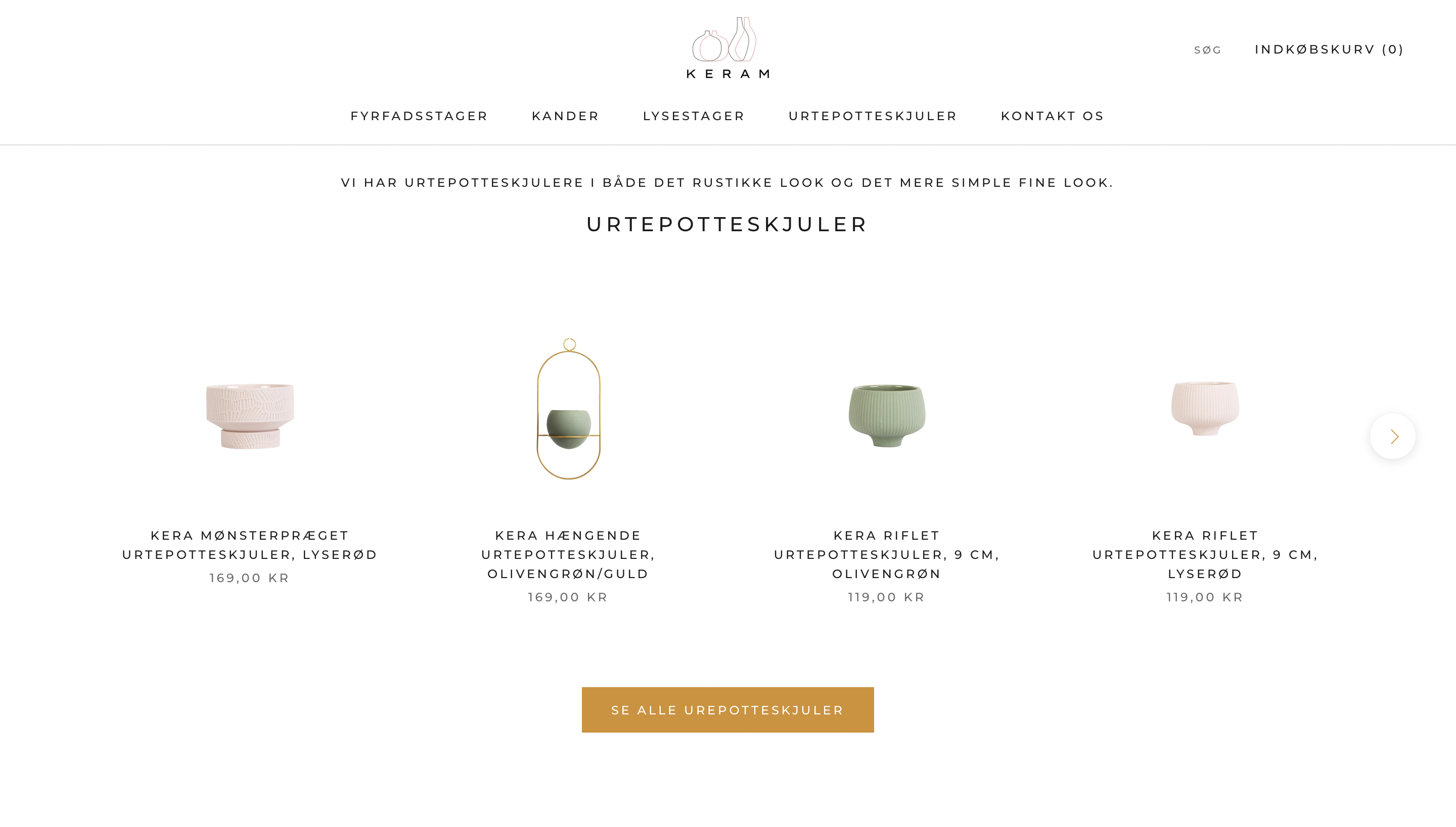 Keram tilbyder keramik i forskellige farver, stil og størrelser! Der alt fra Urtepotteskjuler til Lysestager.