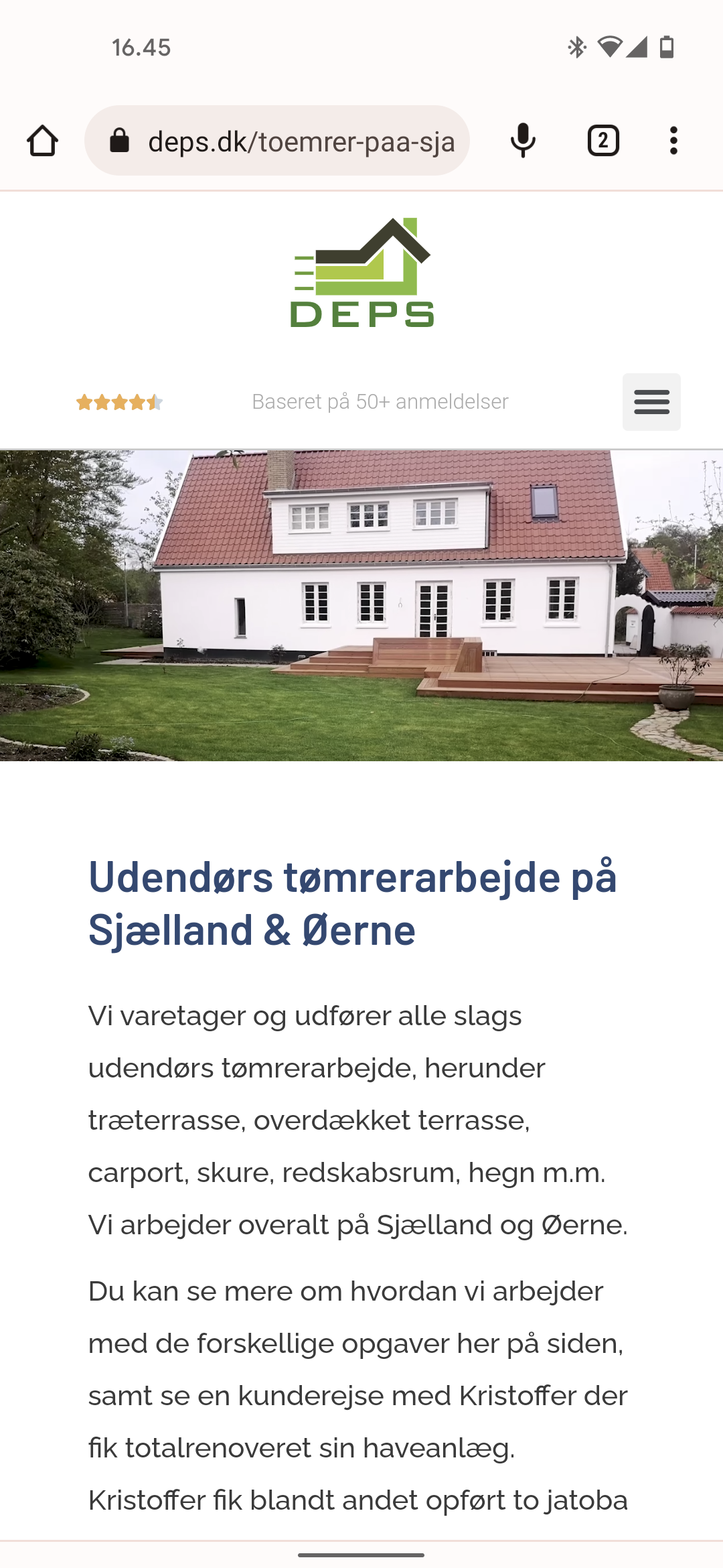 www.deps.dk -min tømrer og anlægs virksomhed er veldrevet. Virksomheden fortjener nye ejere der har plads i tilværelsen til at vækste yderligere.