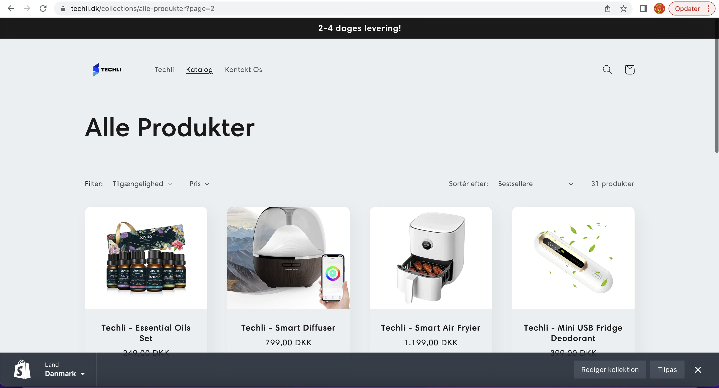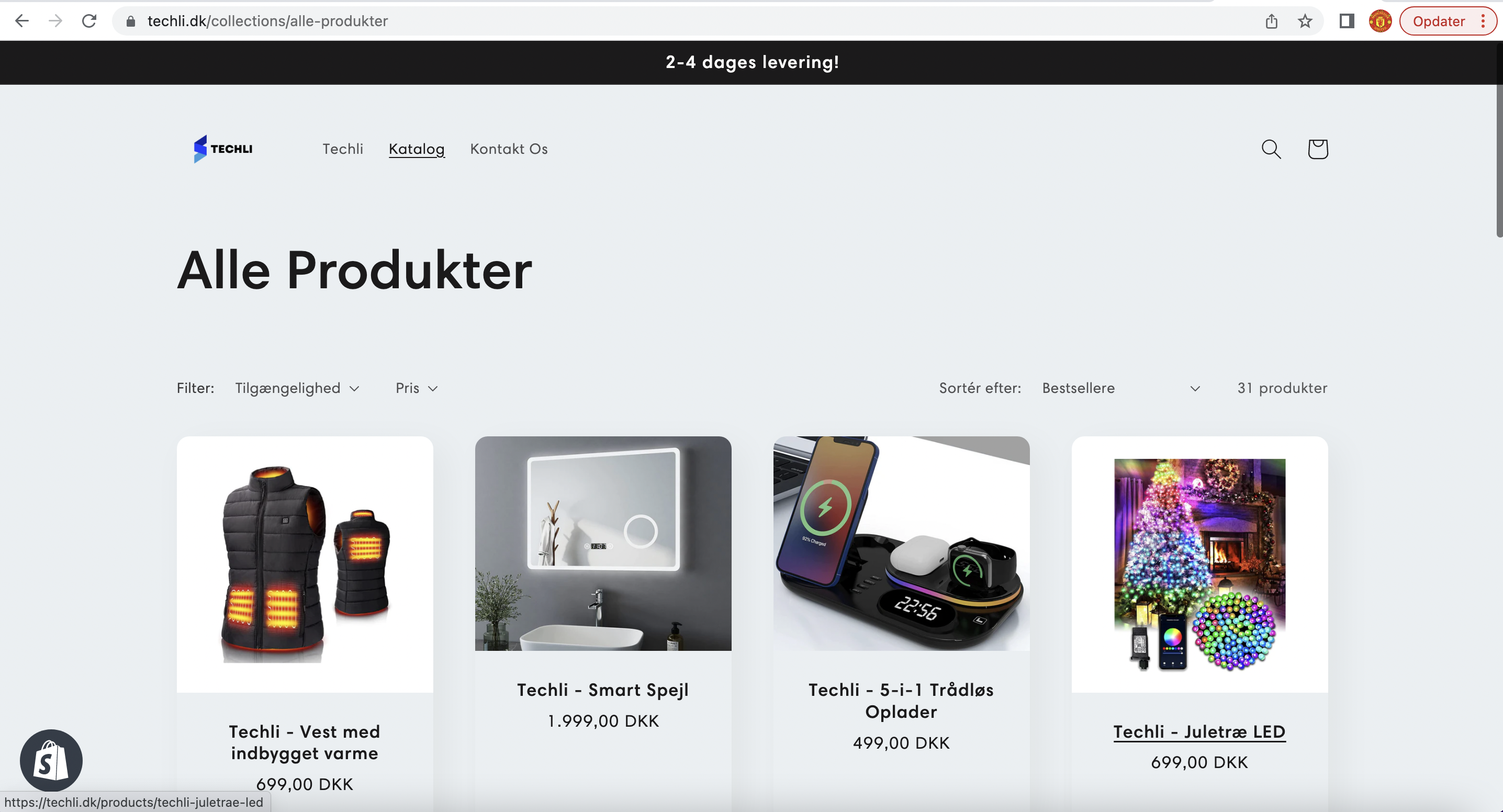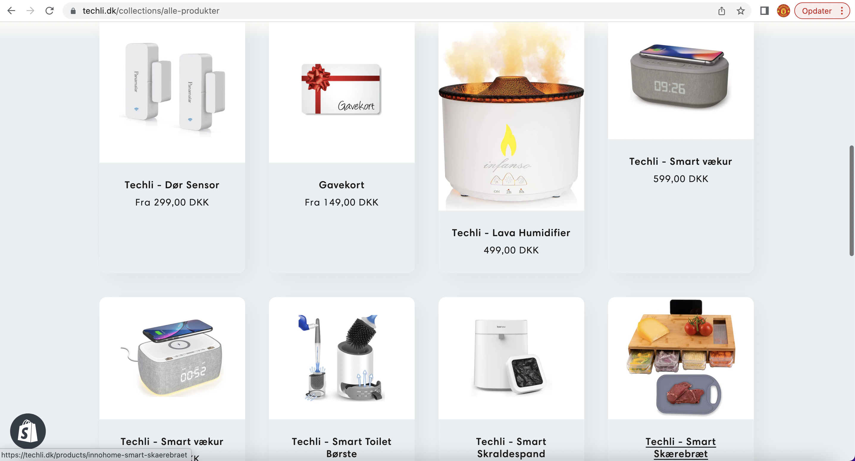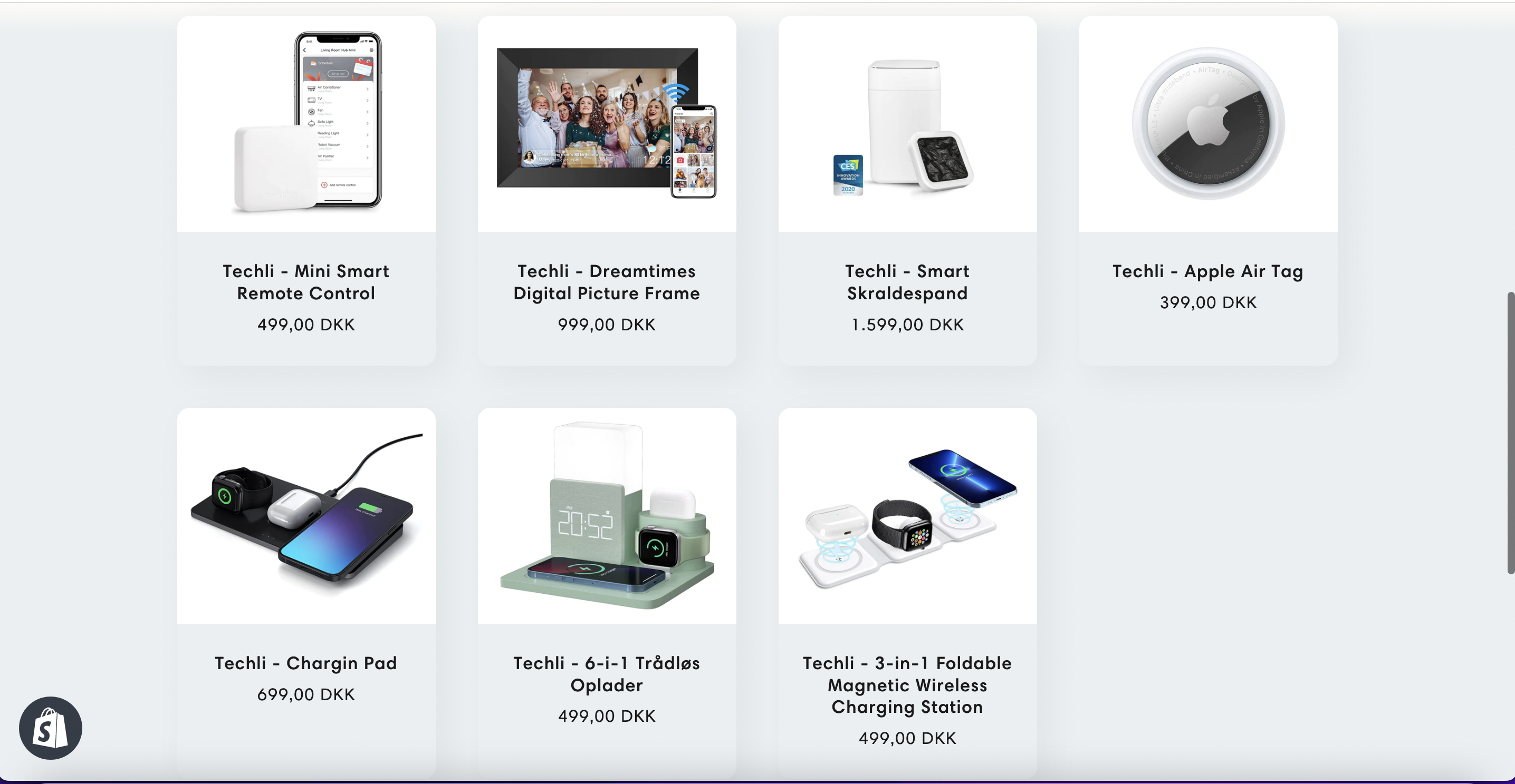 Techli.dk er en dansk webshop med dropshipping koncept. Webshop er med salg af elektroniske gadgets og elektronisk tilbehør. Leveringstiden fra leverandøren er på mellem 2-4 dage afhængig af produkttype. Webshoppen består lige nu af 31 produkter, men der mulighed for at tilføje flere fra leverandøren og samtidig finde nye leverandører og på den måde, udvide sortimentet. Shoppen er lavet i Shopify og og har haft en omsætning på 1298 kr. Der er her en rigtig god mulighed for at skabe en profitabel dropshipping webshop.