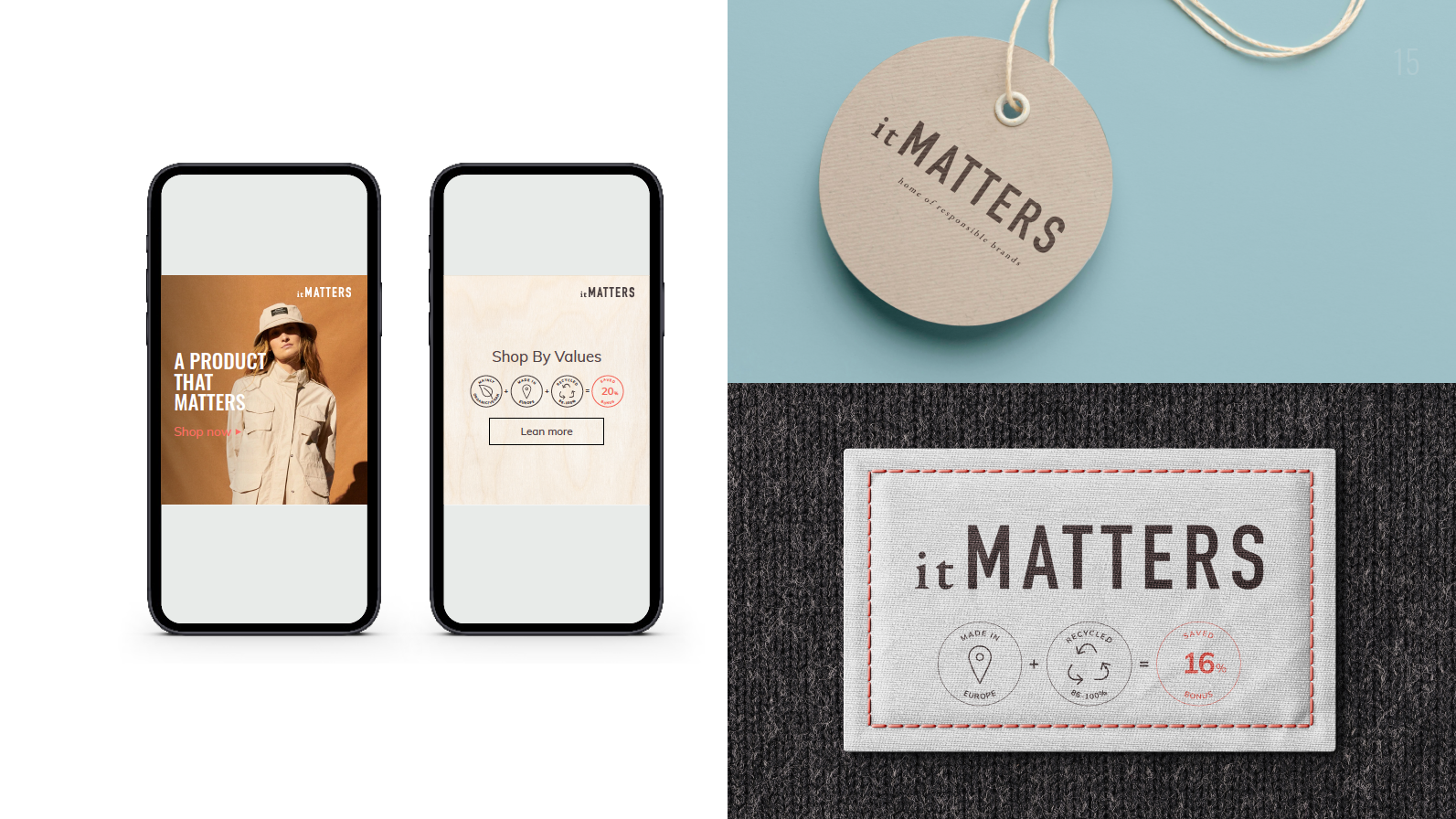 Bæredygtighed/Ansvarlighed er kommet for og blive og forbrugerne tager det for givet. Det er svært for forbrugeren at agere i denne verden, så vi har derfor fået den ide, at samle en masse lækre bæredygtige brands på vores webportal, nogle mere eller mindre bæredygtige, og jo mere bæredygtig kunderne køber jo mere får forbrugeren i bonus til deres næste køb hos os som rabat - så forbrugeren køber med god samvittighed uanset hvad og hvor meget de køber - heraf navnet ItMatters.