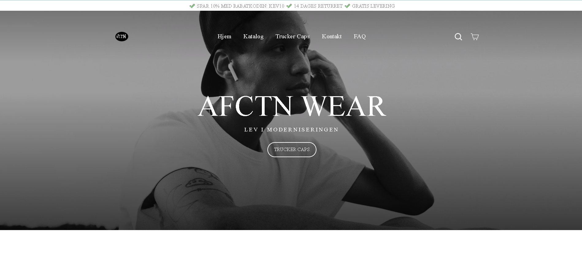 Afctn er et tøjmærke, som sælger truckercaps. Vi har 3 caps vi selv har designet, i hver din farve.