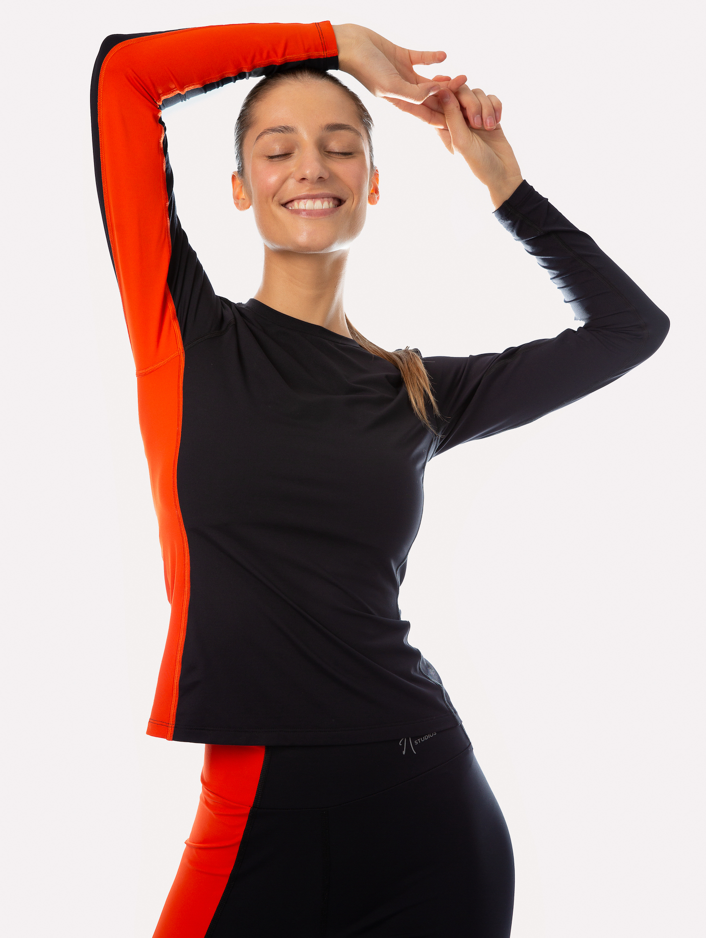 Der er tre styles bestående af: en langærmet trøje, leggings og en sports-bh. Materialerne har tekniske komponenter som "quick dry", UV-beskyttelse, "Pilling Resistance", og "Two-way-stretch". Alt er designet af os selv, og produceret privat til os hos en stor producent i Portugal med vores egne valgte materialer fra Italien.