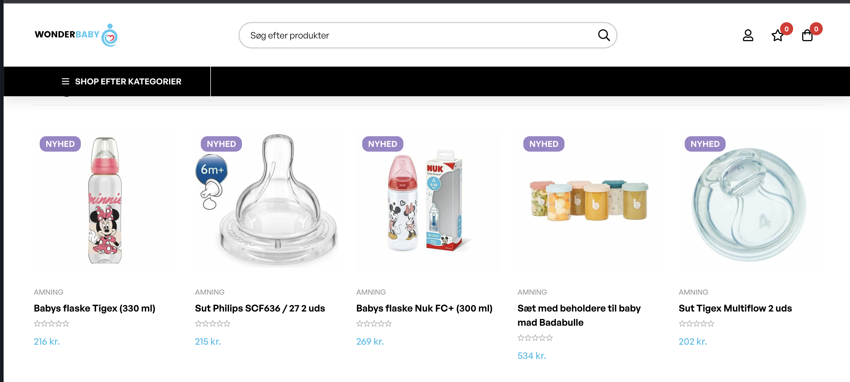 Webshoppen wonderbaby.dk sælger alt til børn og babyer. Shoppen har en attraktiv aftale med én stor leverandør, hvor kendte brands og produkter kan købes til 50-80% besparelser i forhold til andre butikker. Der er over 100.000 produkter og 300+ brands på shoppen.