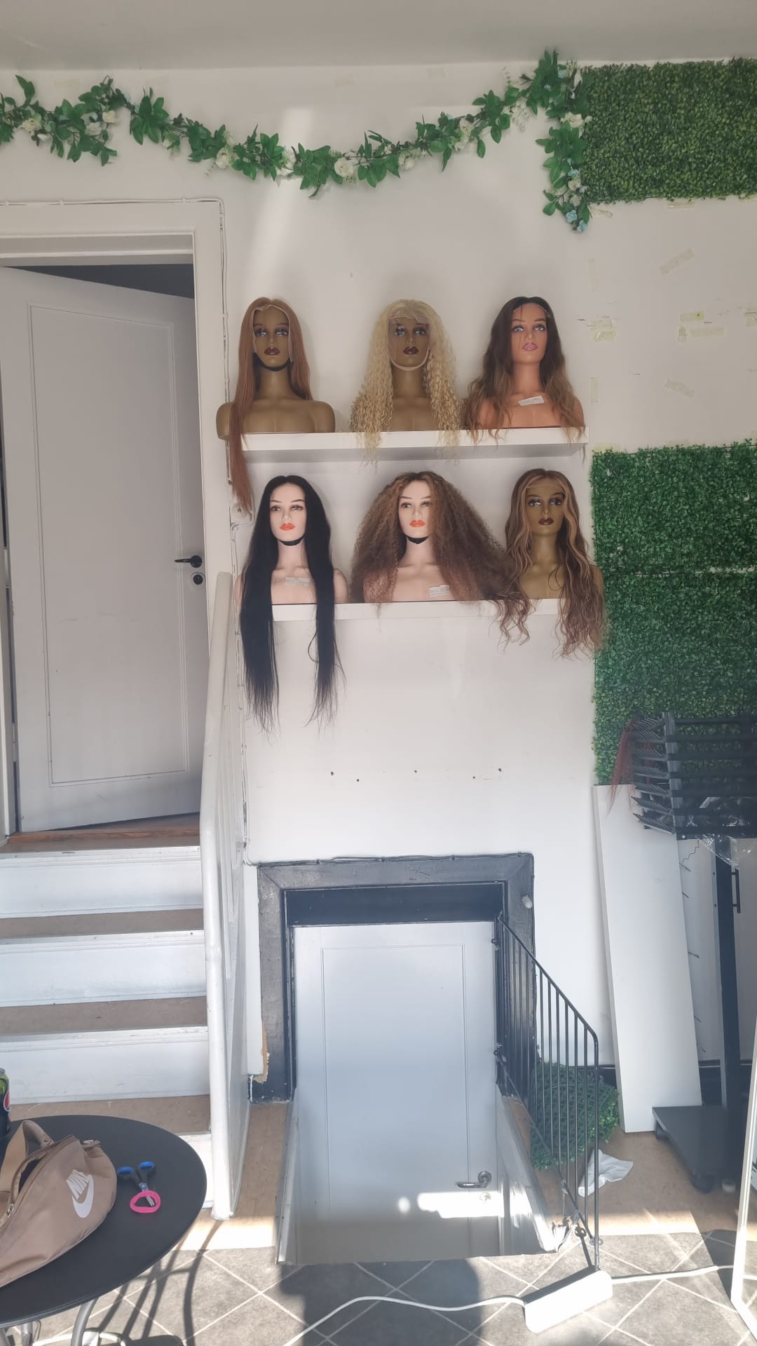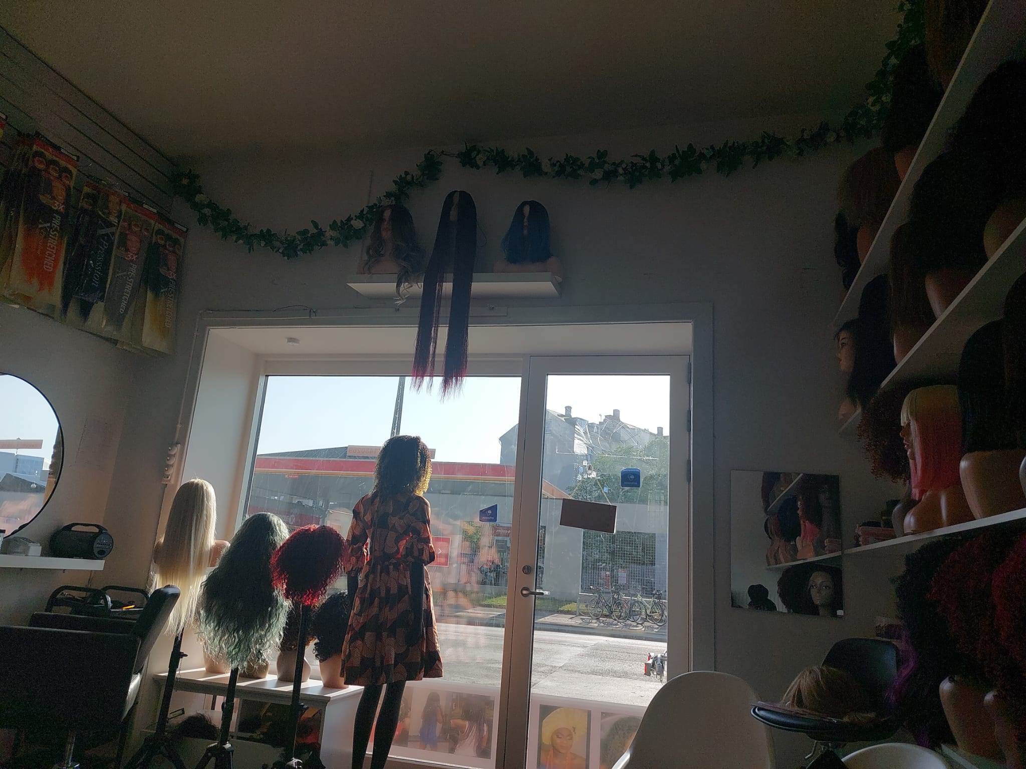 Baglokale og kælder: Vores butik har et baglokale med køkken og toilet - og en kælder til opbevaring af ekstra forsyninger, redskaber og udstyr, der sikrer, at vi altid er godt forberedt. I kælderen opbevarer vi vores sortiment af hårforlængelser, parykker, hårplejeprodukter og andre skønhedsrelaterede varer. Dette giver os mulighed for at imødekomme vores kunders behov hurtigt og effektivt.