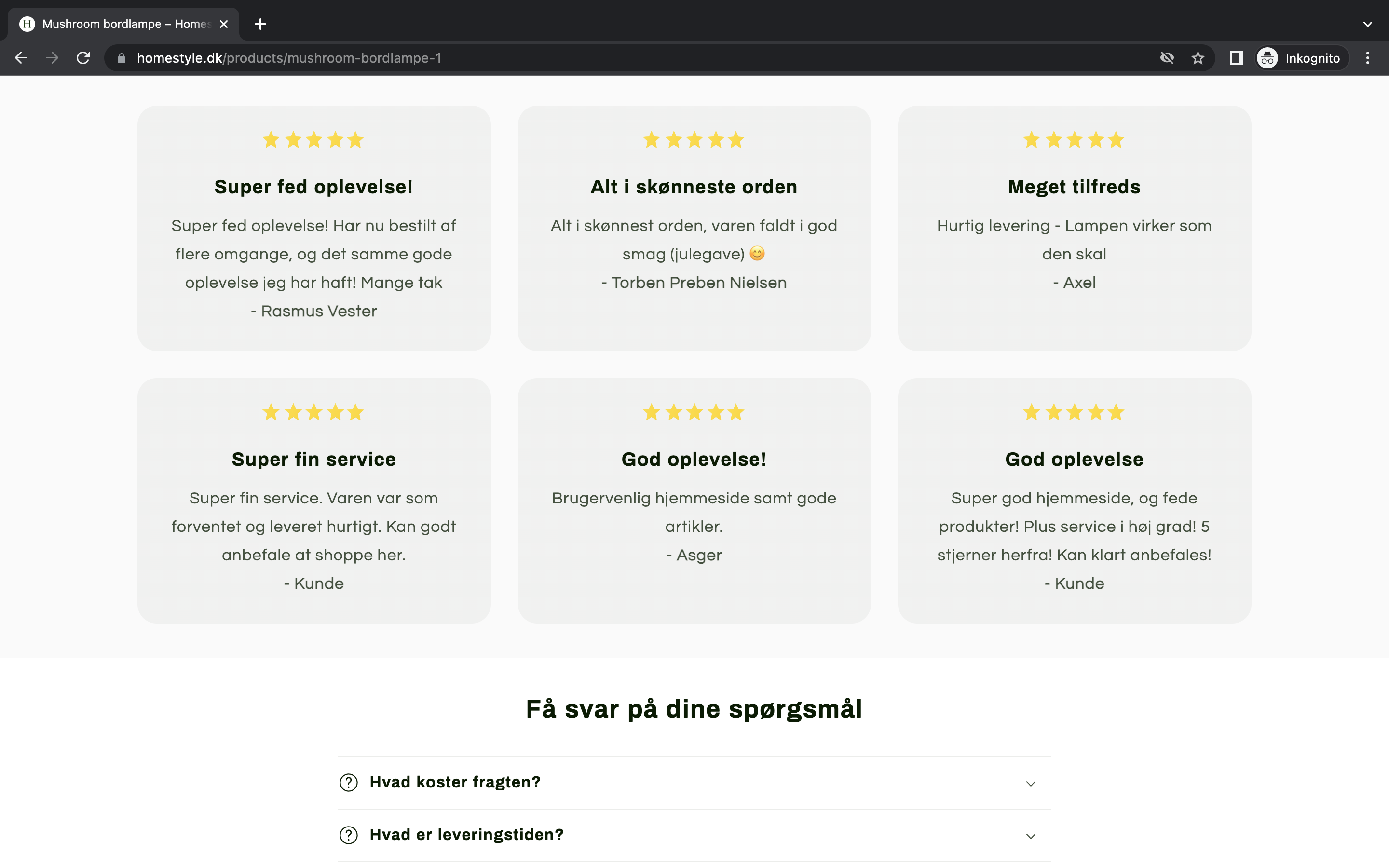 Siden er opbygget i Shopify som er et meget nemt styresystem. Virksomhedens varehuse er placeret i Europa og har 3 dages levering. - Varene bliver sendt med GLS.