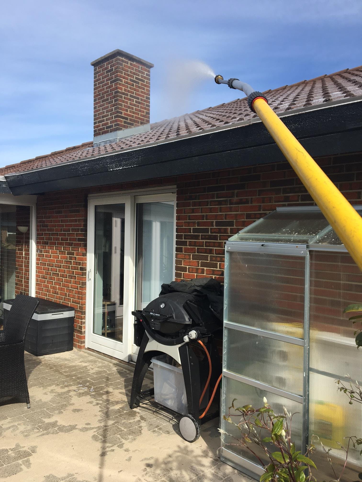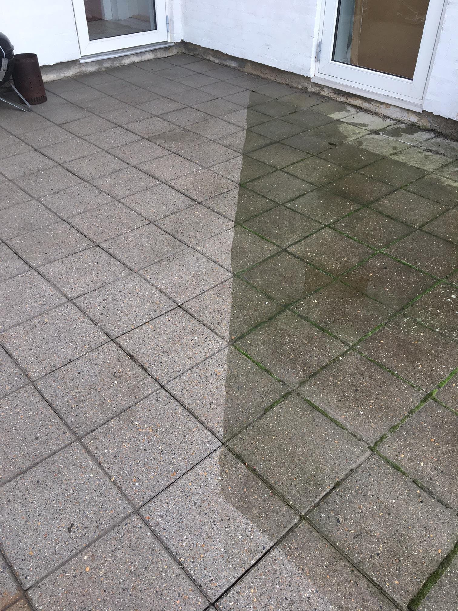 Fliser højtryksvaskes med en specialudviklet højtryksrenser, der fjerner alger på og mos mellem fliser på terrasse, indkørsler mv. Ejeren af ejendommen skal efterfølgende selv drysse nyt sand ud og feje det ned mellem fliserne.