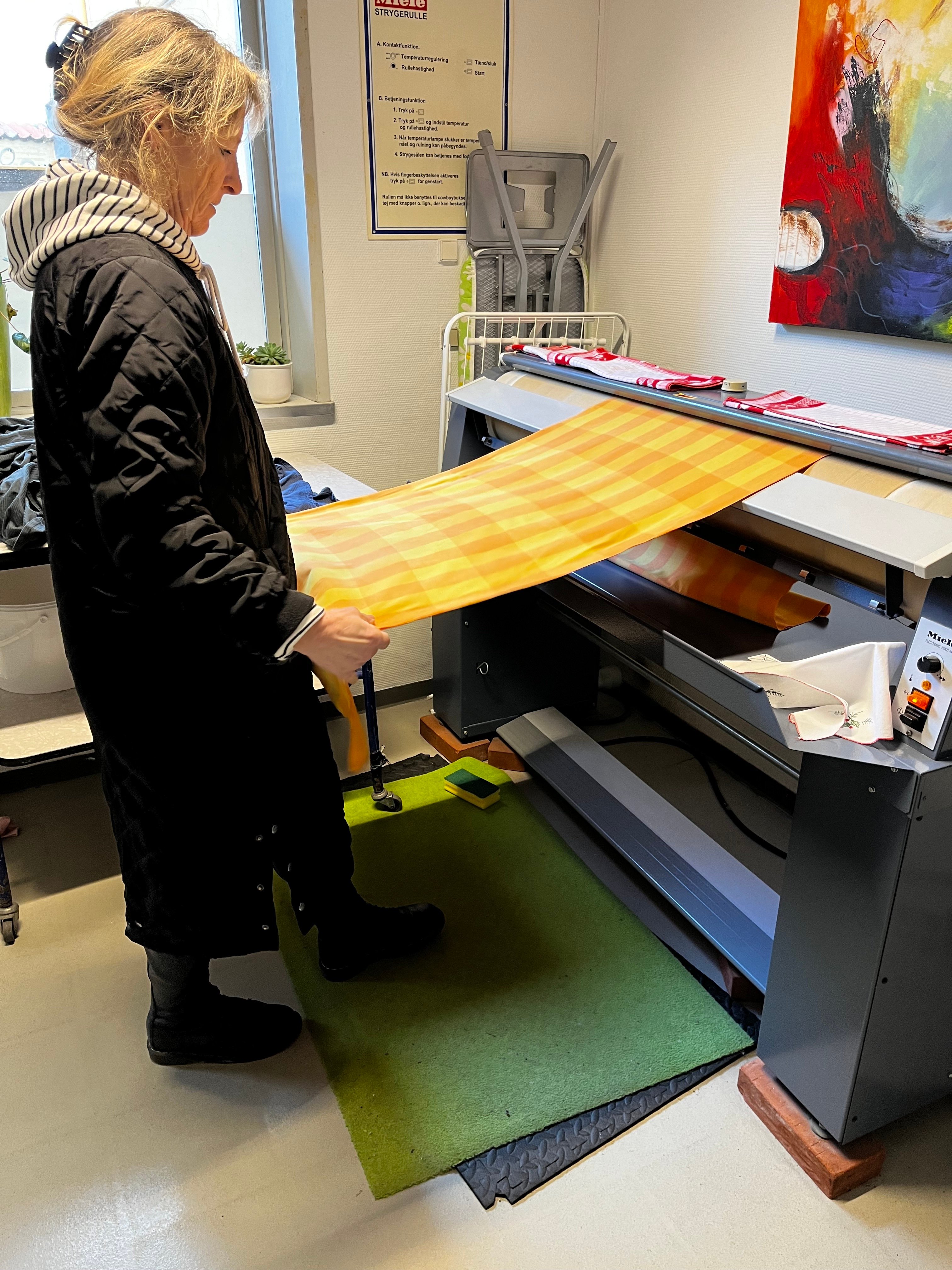 Næste område består af opbevaring samt en stor varmerulle samt stativer til ophængning af rulle tøj til afkøling.