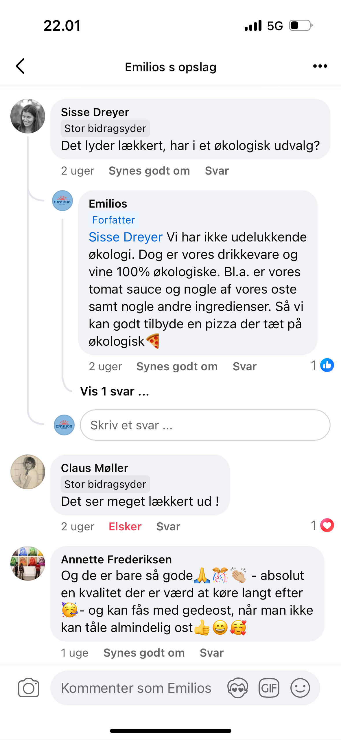 Emilios er et nyopstartet pizzeria i Danmarks største sommerhus område. Området byder på købestærke og kvalitetsbevidste gæster, hvoraf vi er en af få udbydere i hele området.