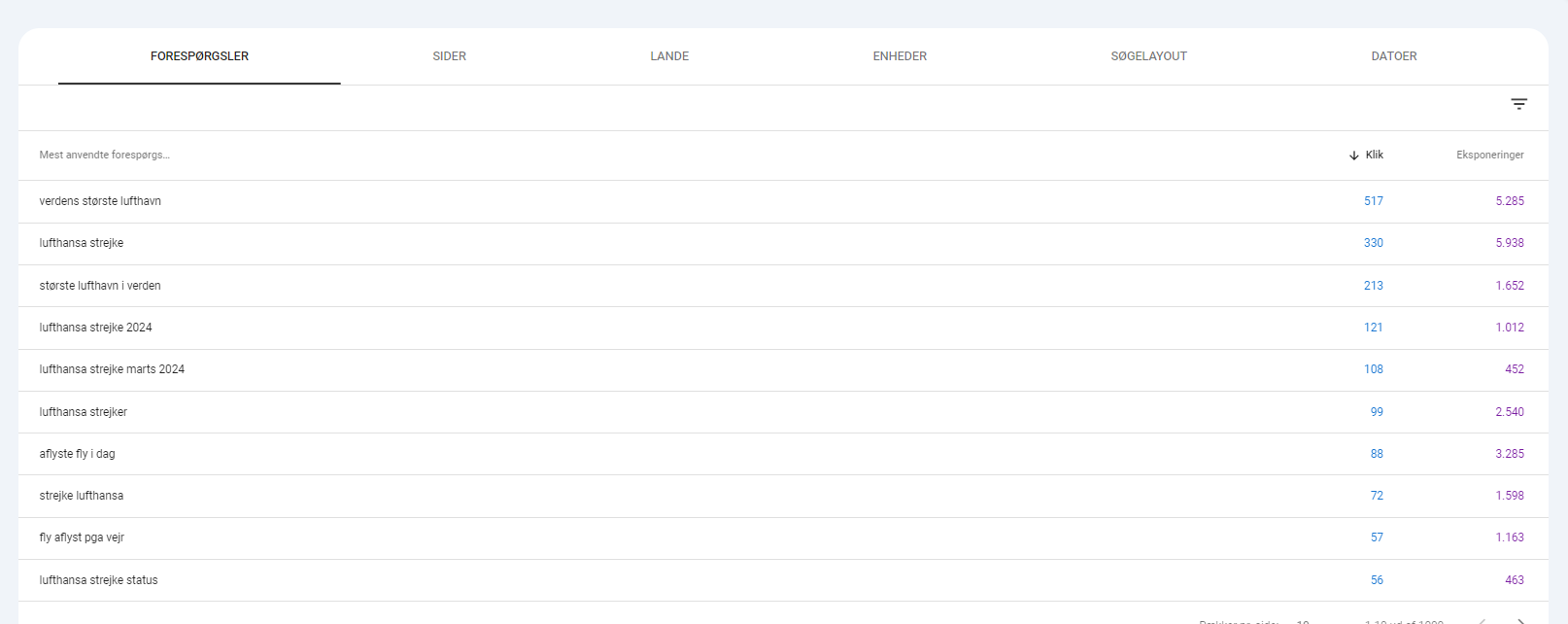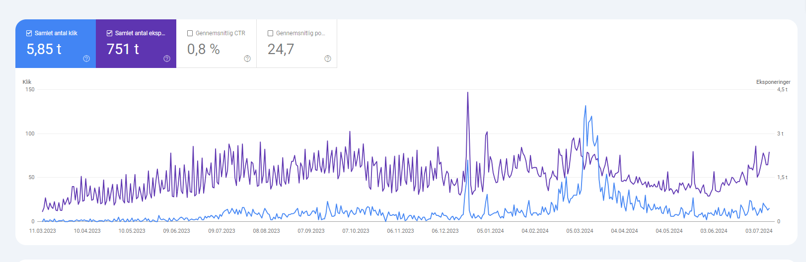 Flybilletguiden.dk er en affiliate hjemmeside, der har specialiseret sig i at hjælpe brugere med at finde information og få kompensation for aflyste fly. Med en stærk fokus på SEO og nøgleord relateret til flykompensation, har siden opnået imponerende trafik og synlighed. I de sidste 16 måneder har hjemmesiden registreret 750.000 visninger og ca. 5.500 kliks. Selvom konverteringerne har været lavere end ønsket, er der alligevel genereret en indtægt på ca. 10.000 kr gennem affiliate marketing de sidste to år.