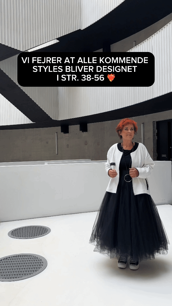 Vi er et lille brand med eget design af tøj til kvinder i størrelse 38-56. Designet i Danmark af