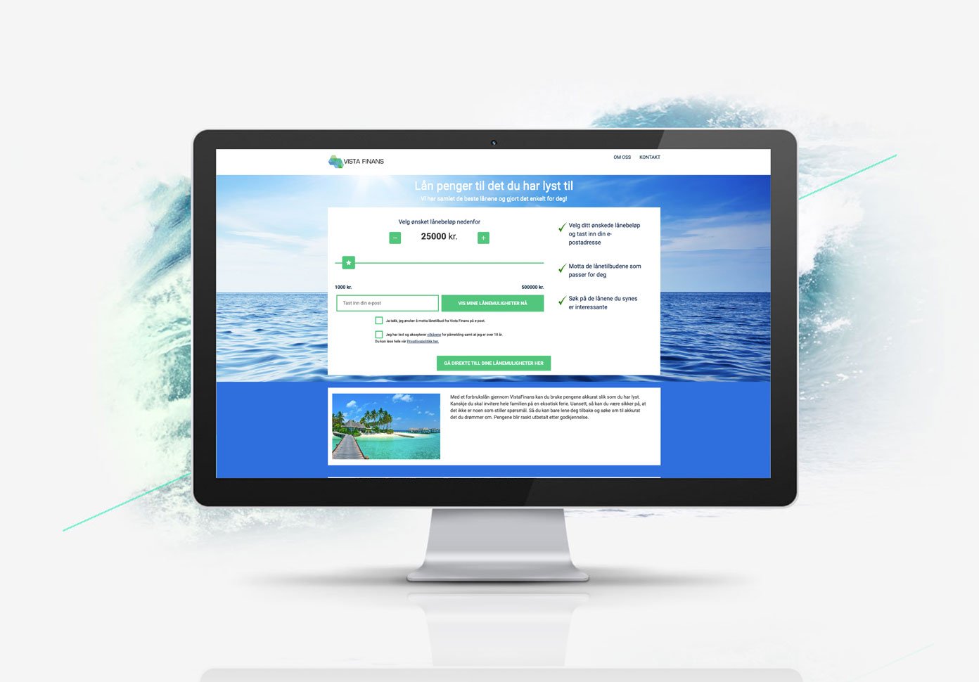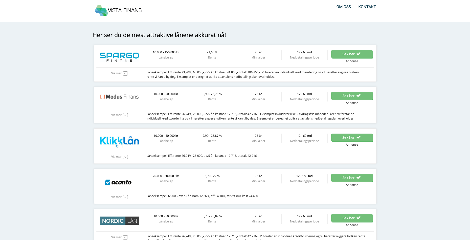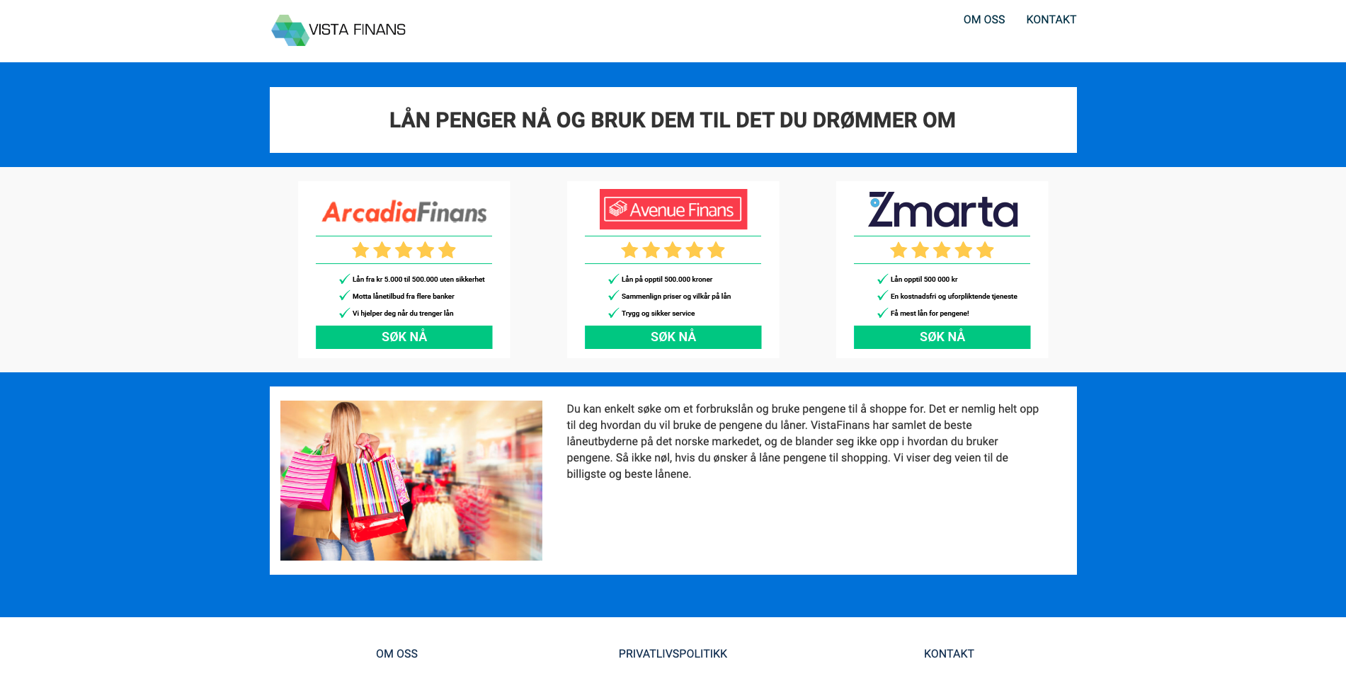 VistaFinans.no er et affiliate site med lån og med opsamling til nyhedsbrev.