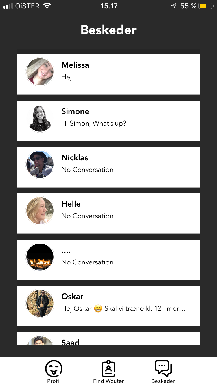 Ligesom man kender det fra Tinder, så swiper man sig frem til en nye makker. Designet er simpelt og lækkert, hvilket gør wout interessant at bruge.