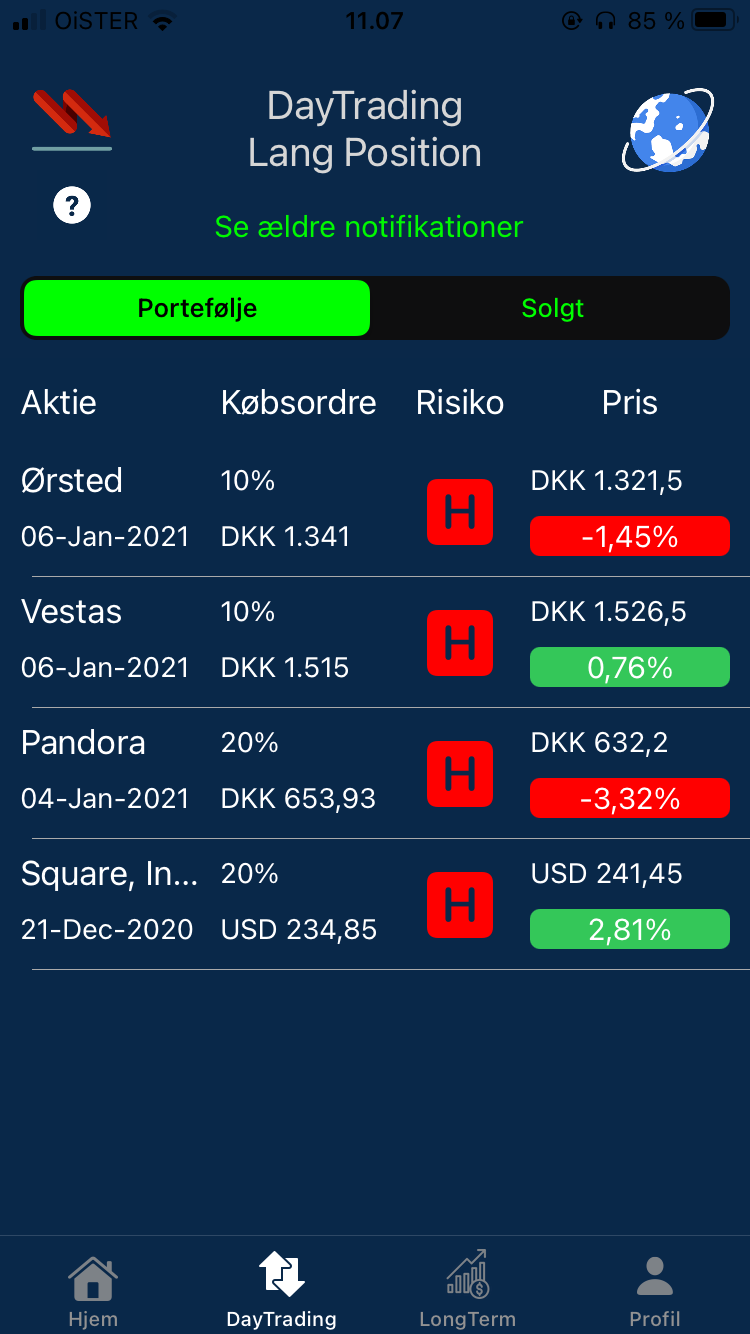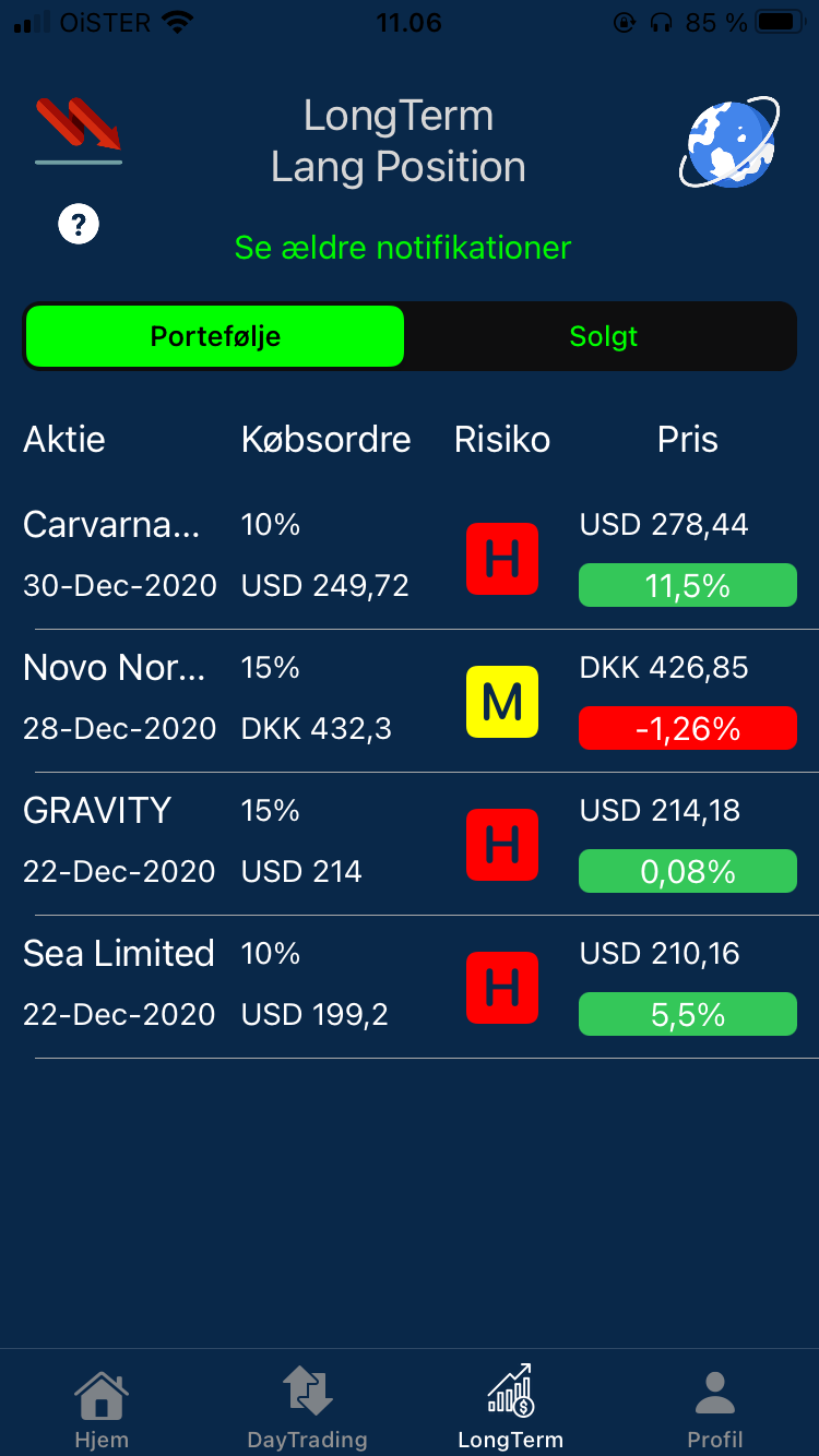 Vi har før tilbudt en kortsigtet og en langsigtet portefølje, men har efterfølgende ændret det til en gratis og en betalt portefølje hvor der er reklamer i den gratis portefølje.