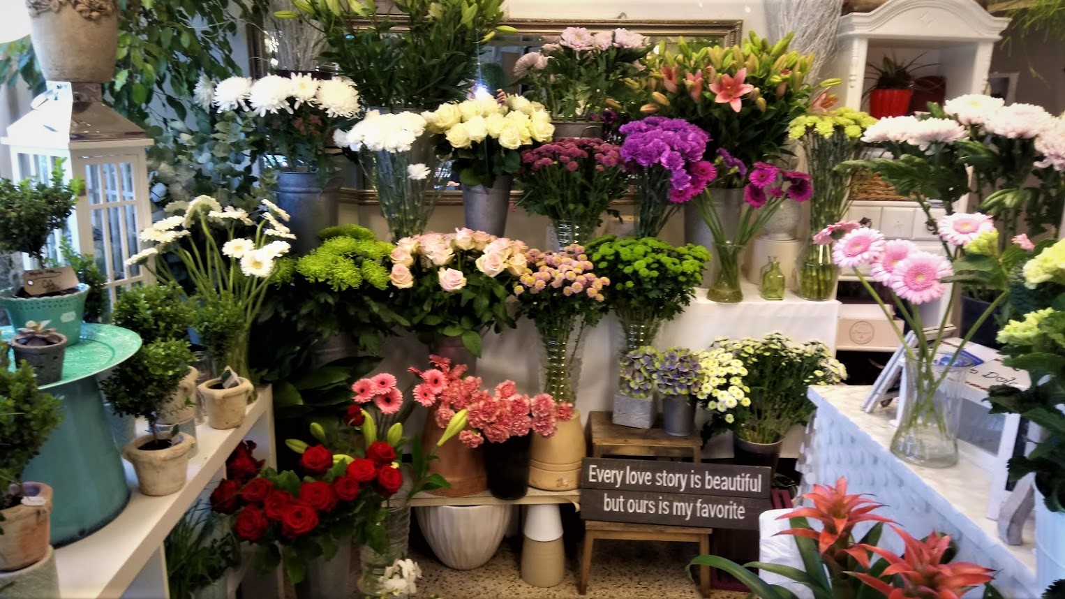 Butikken ligger centralt placeret lige midt imellem 2 forskellige kapeller/kirkegårde og kun 500 til centrum, der er mange bestillinger til begravelser osv., så der er stort set intet spild på snitblomster.