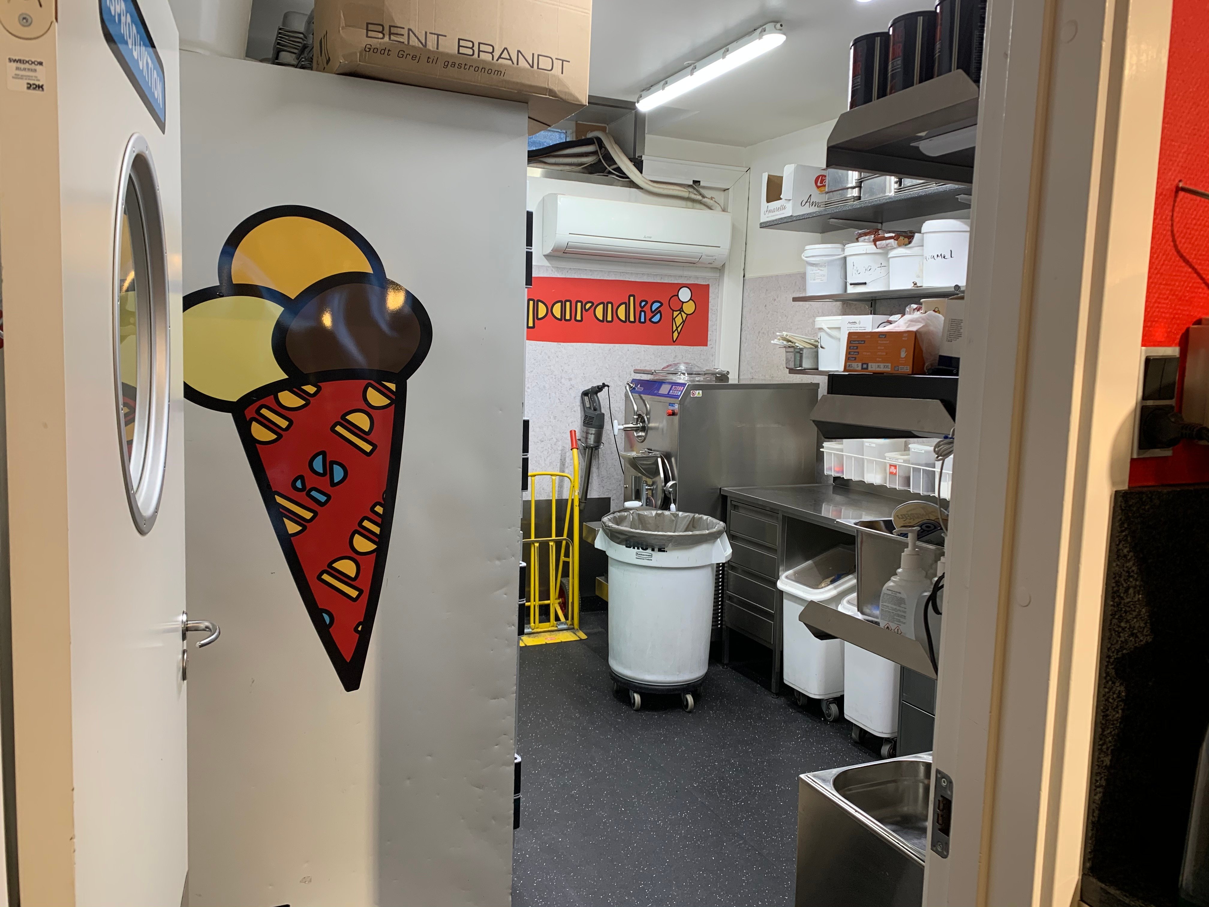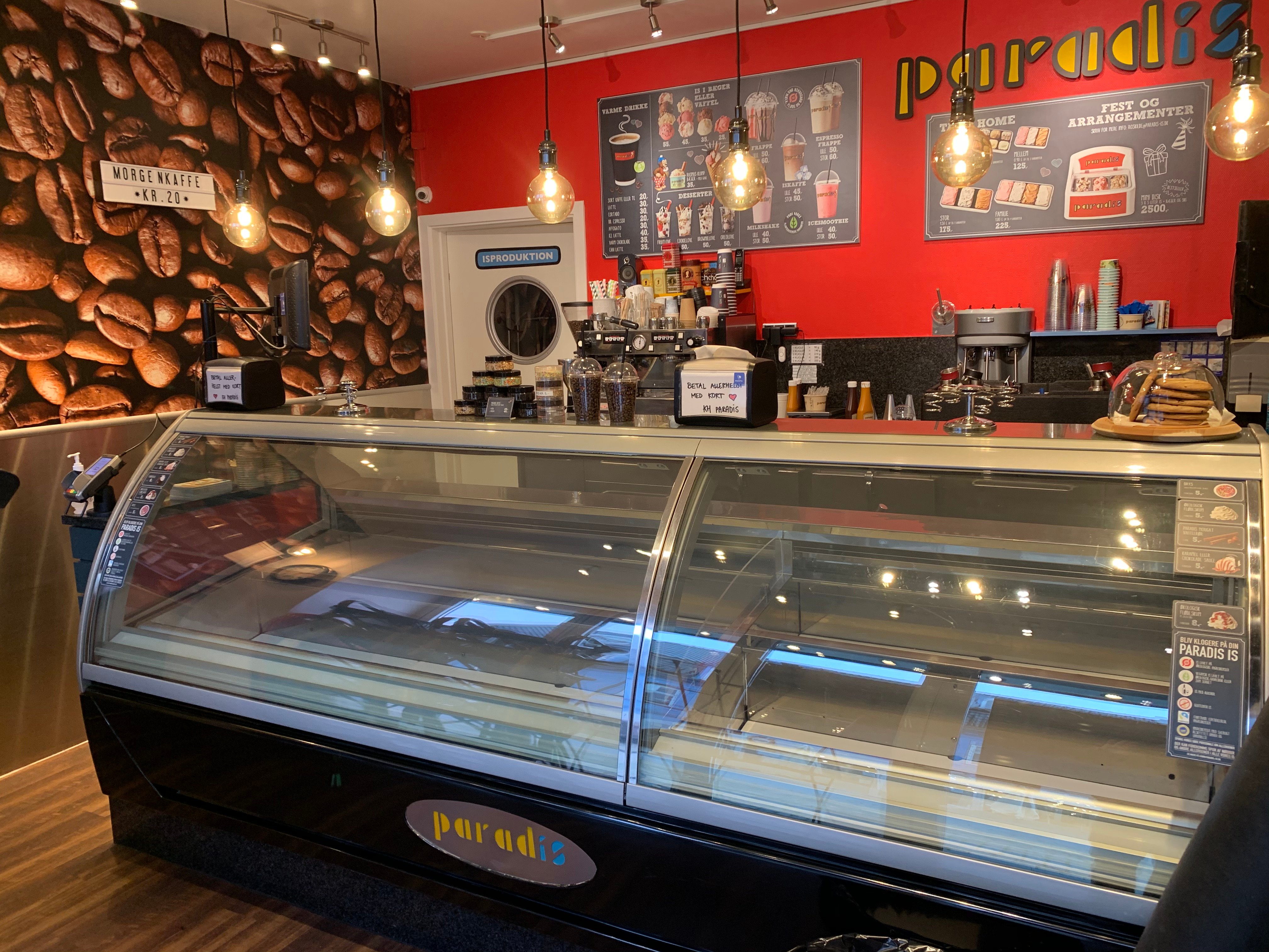 Vi flytter vores Paradis is butik 30 meter ned af gaden for at få mere plads- derfor foretrækker vi at sælge inventaret med, det bliver svært at passe ind i de nye lokaler.