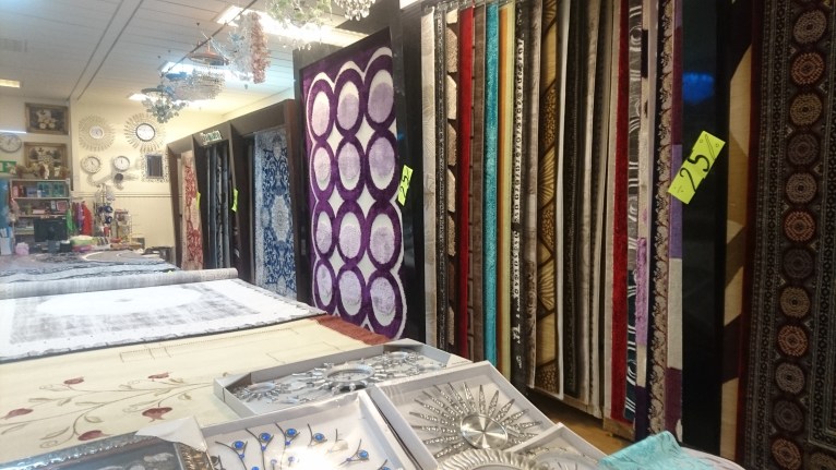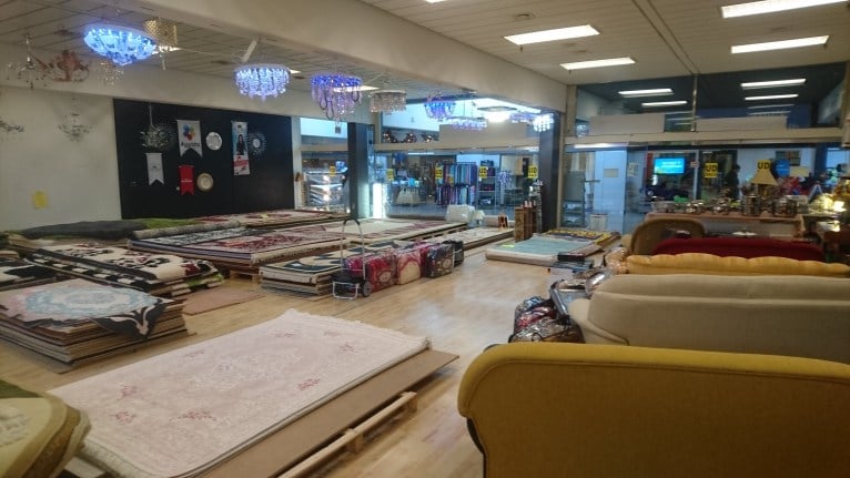Tæppebutikkens areal er på 248m2 og der er tilknyttet kælder og lagerlokale.