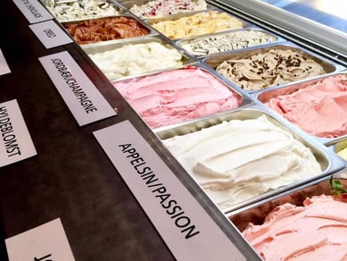 Primære produkt er den hjemmelavede, friske is, som de selv producerer dagligt i Algade – lavet på økologisk mælk, fløde og rørsukker, samt de allerbedste råvarer. Den sælges i vaffel eller bæger – eller blendet med økologisk letmælk som milkshake og frapper.