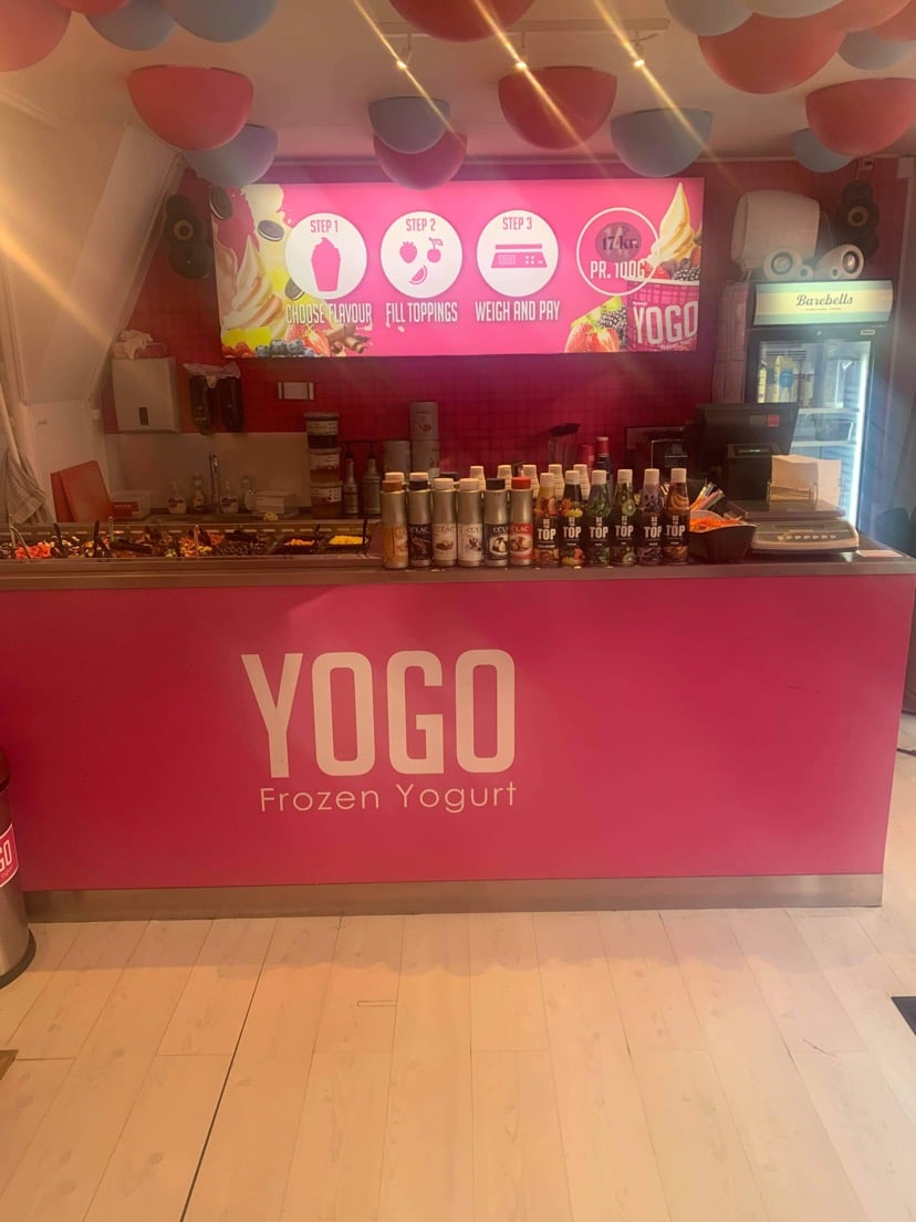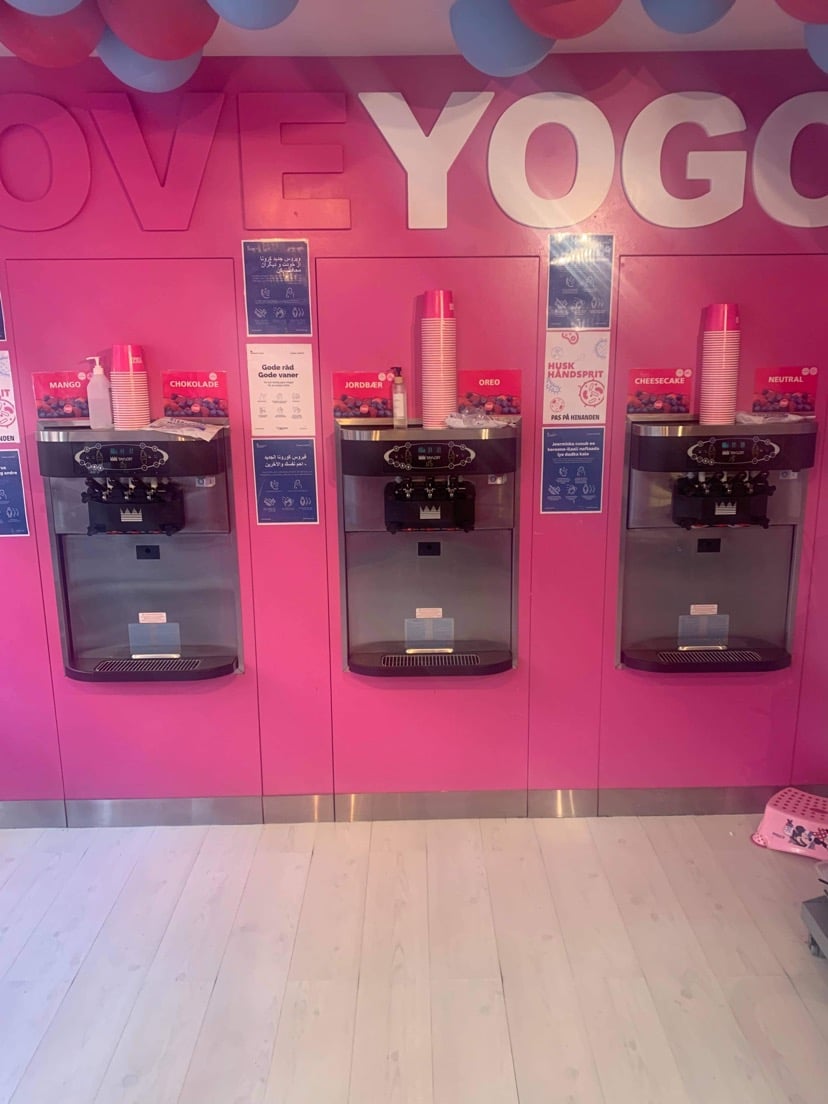 Landets bedste Frozen Yoghurt serveres her. Kunderne supplerer isen med mere end 50 forskellige toppings.