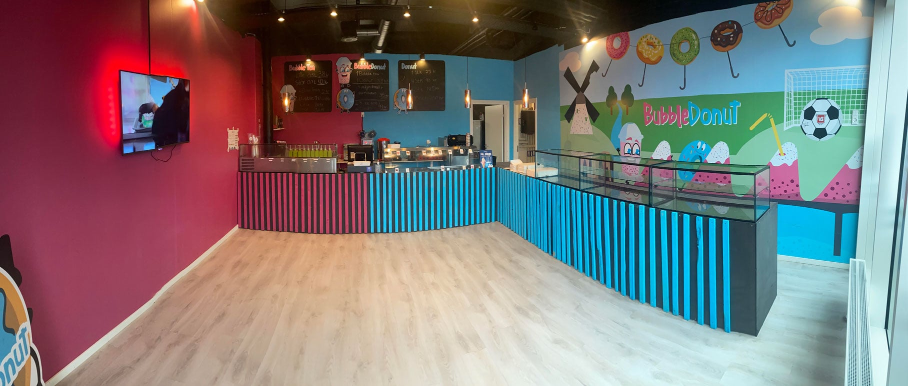 Bubble Donut konceptet er kombineret med de to farverige verdener og mest varme for tiden - nemlig Bubble Tea og Donuts. Altid et stort udvalg af bubble tea perler, tapioka, jelly'er, milkshakes og minimum 20 forskellige donuts på disken.