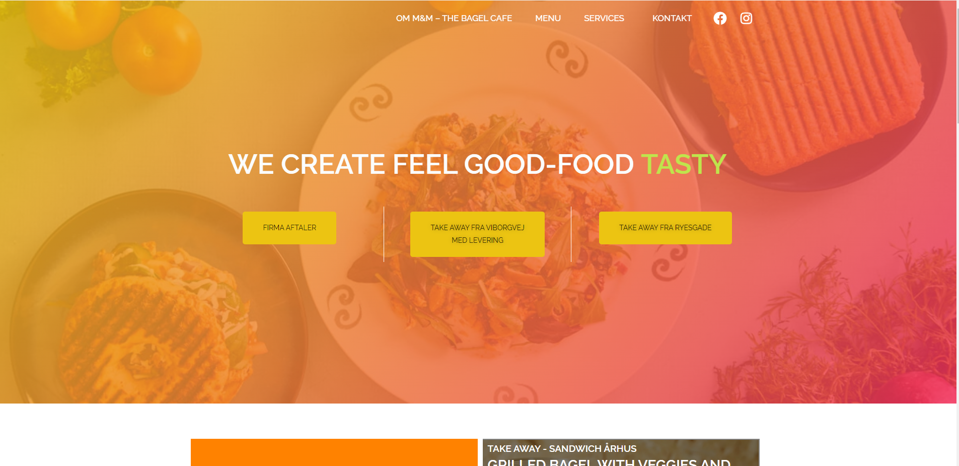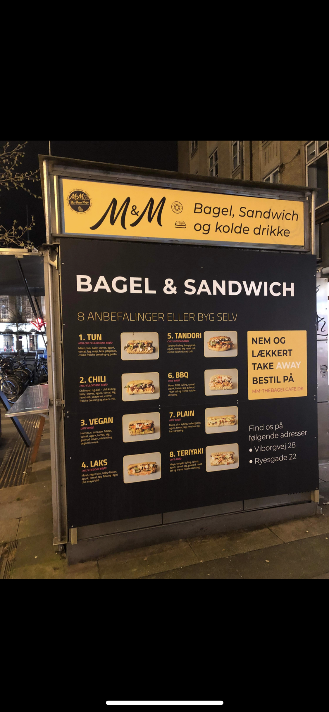 Vi sælger sandwich, bagels, salater og milkshakes/lemonader.