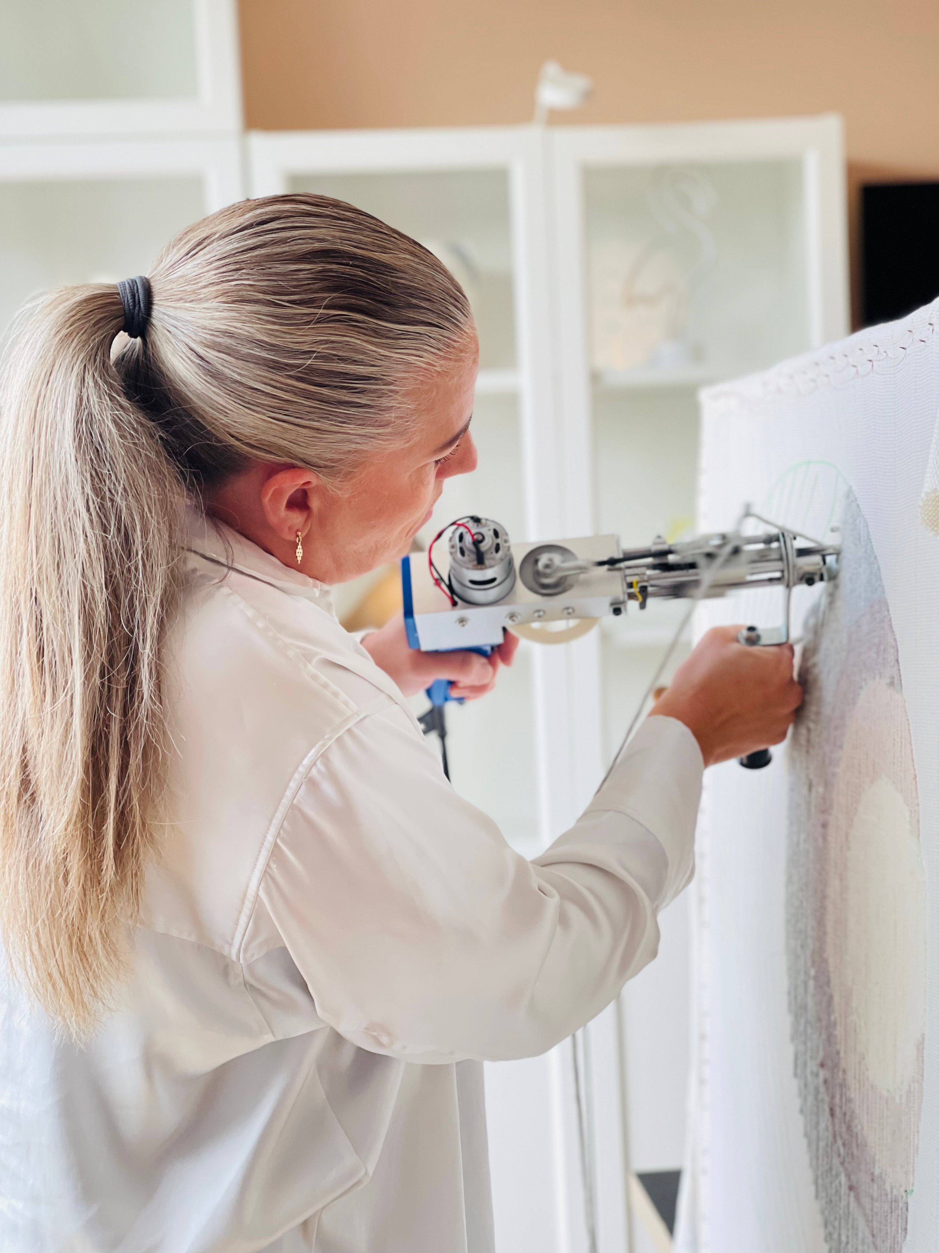 Mit navn er Julia, og jeg grundlagde Tufting Studio ud fra en stærk passion for kreativitet og håndværk, som jeg selv oplevede havde en dyb virkning på trivsel og mental balance. Tufting blev for mig en vej til at skabe ro, nærvær og glæde gennem hænderne, og det inspirerede mig til at udvikle et koncept, hvor alle kan opleve den samme glæde og flow.