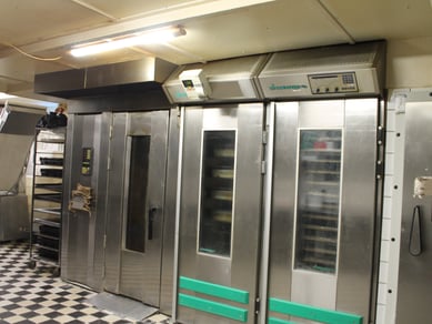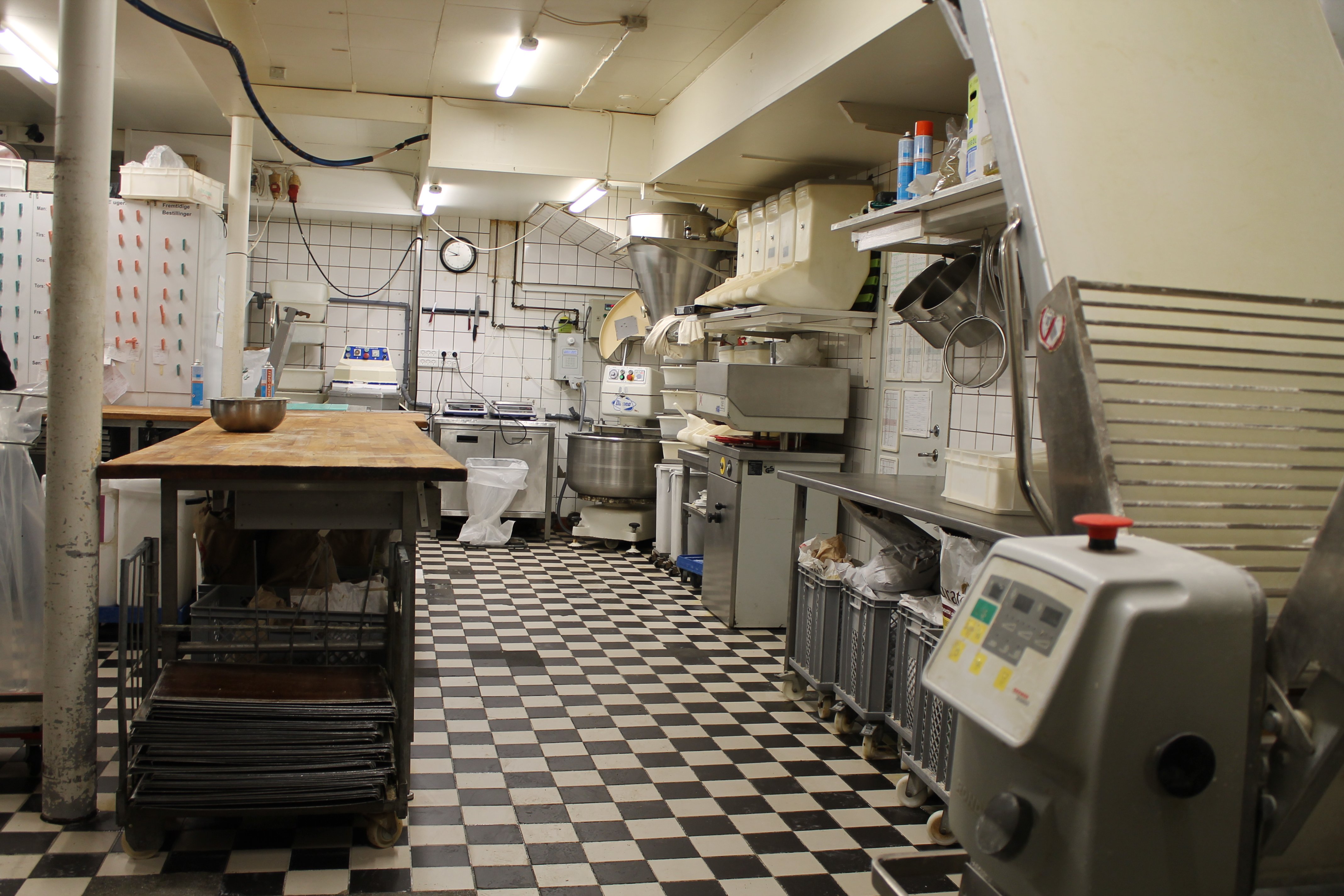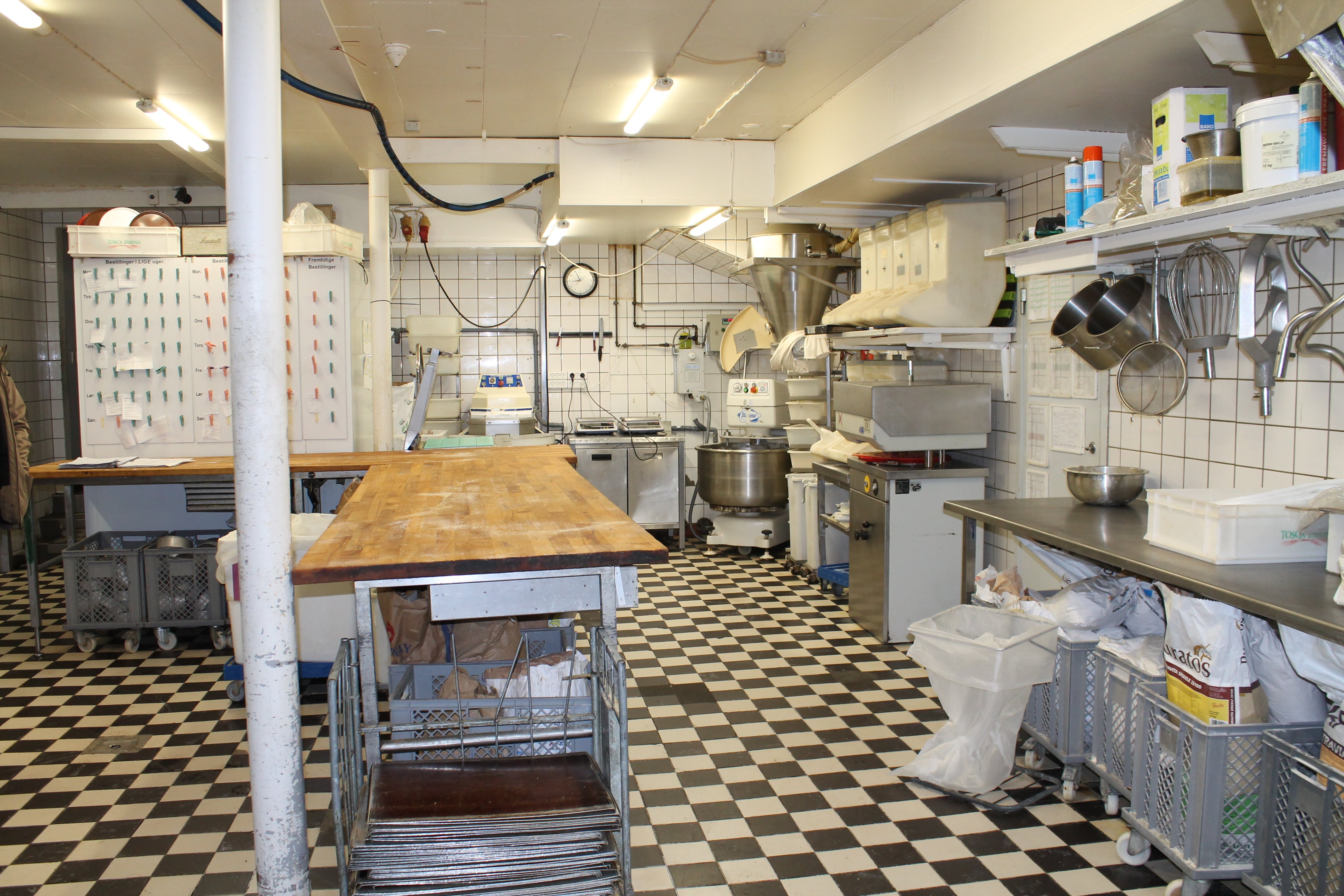 2 fryserum, 3 Kølerum, raskeskab 2 stk. , 5 stiks gærstop, Pladepudser, halvautomatisk rullebord, 2 dejælter, 2 røremaskiner, Melsilo, 10-20 dejdeler, opvaskemaskine bageri, diverse stikvogne, borde, forme osv. som et normalt bageri har.