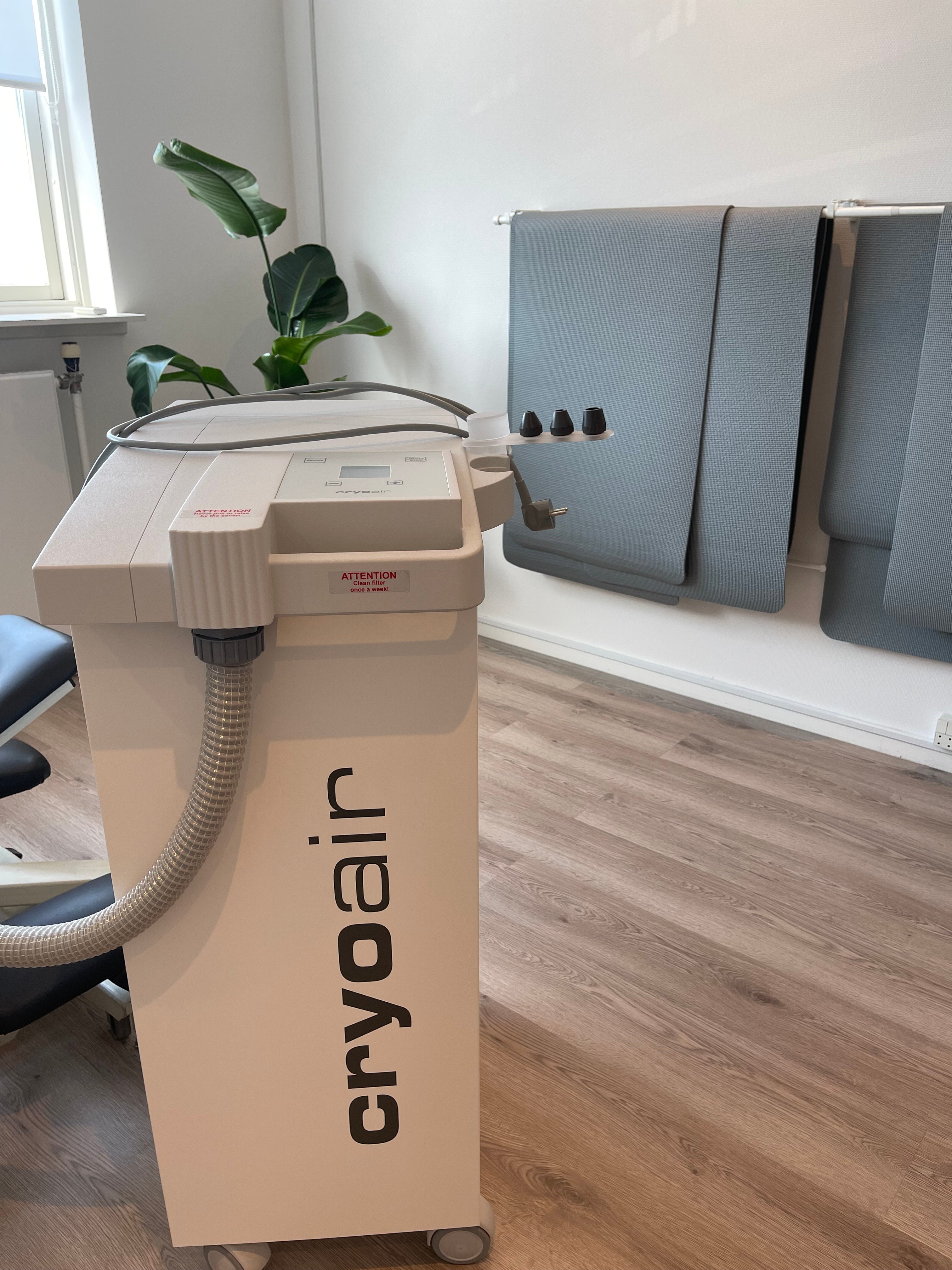 CryoAir C600 fra Mecotec (https://www.mecotec.net/en/products/cold-air-therapy-devices/) (nypris: 15.000€)