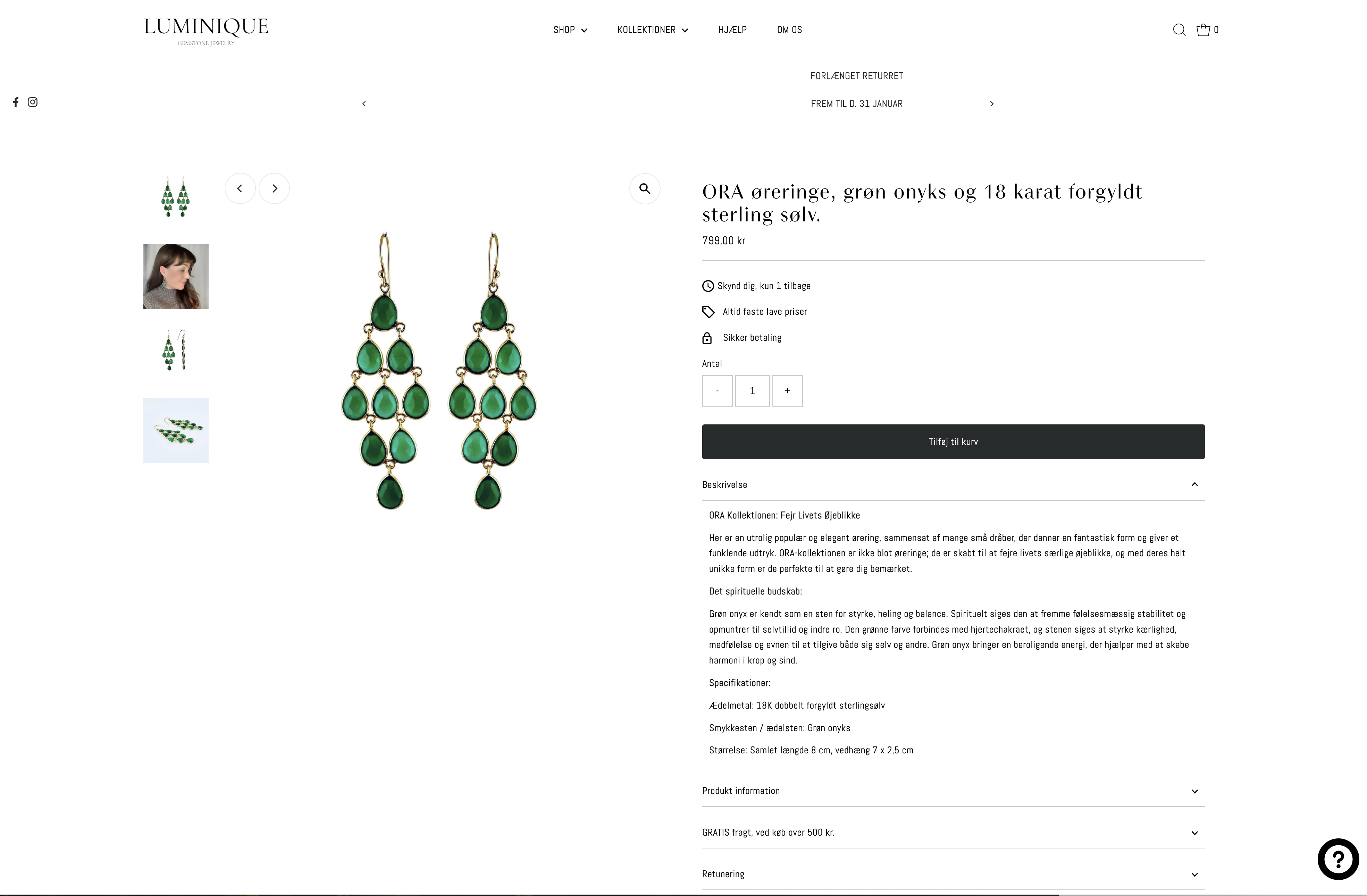LUMINIQUE tilbyder håndlavede smykker i sterling sølv og 18 karat guldbelagt sølv med waterproof og anti-tarnish belægning for lang holdbarhed. Smykkerne prydes af naturlige ædel- og halvædelsten.