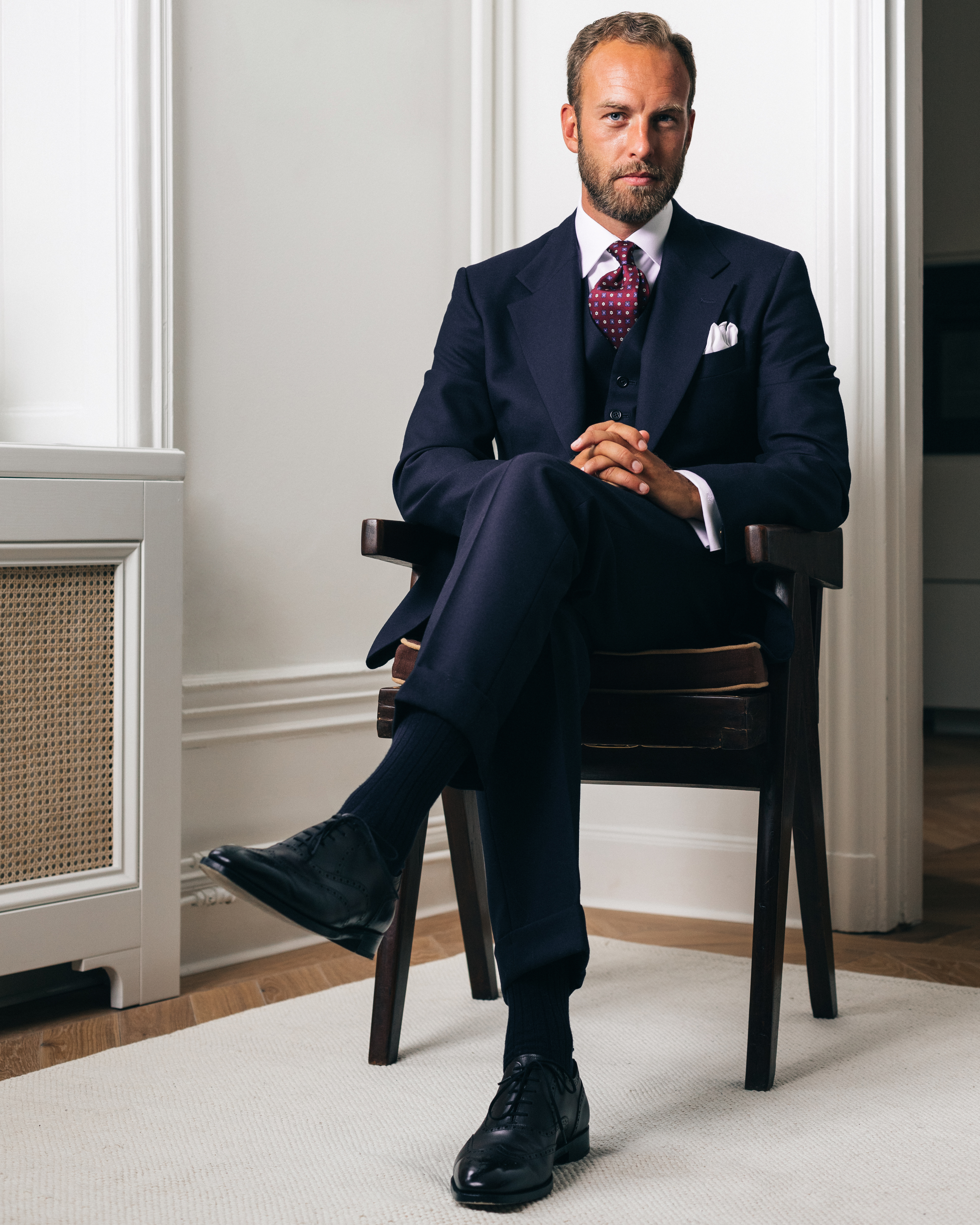 Premium håndværk: Vores tøj er håndlavet i Europa med materialer fra anerkendte italienske og britiske væverier (f.eks. Loro Piana, Huddersfield osv), hvilket sikrer en kvalitet, der overgår masseproducerede alternativer.
