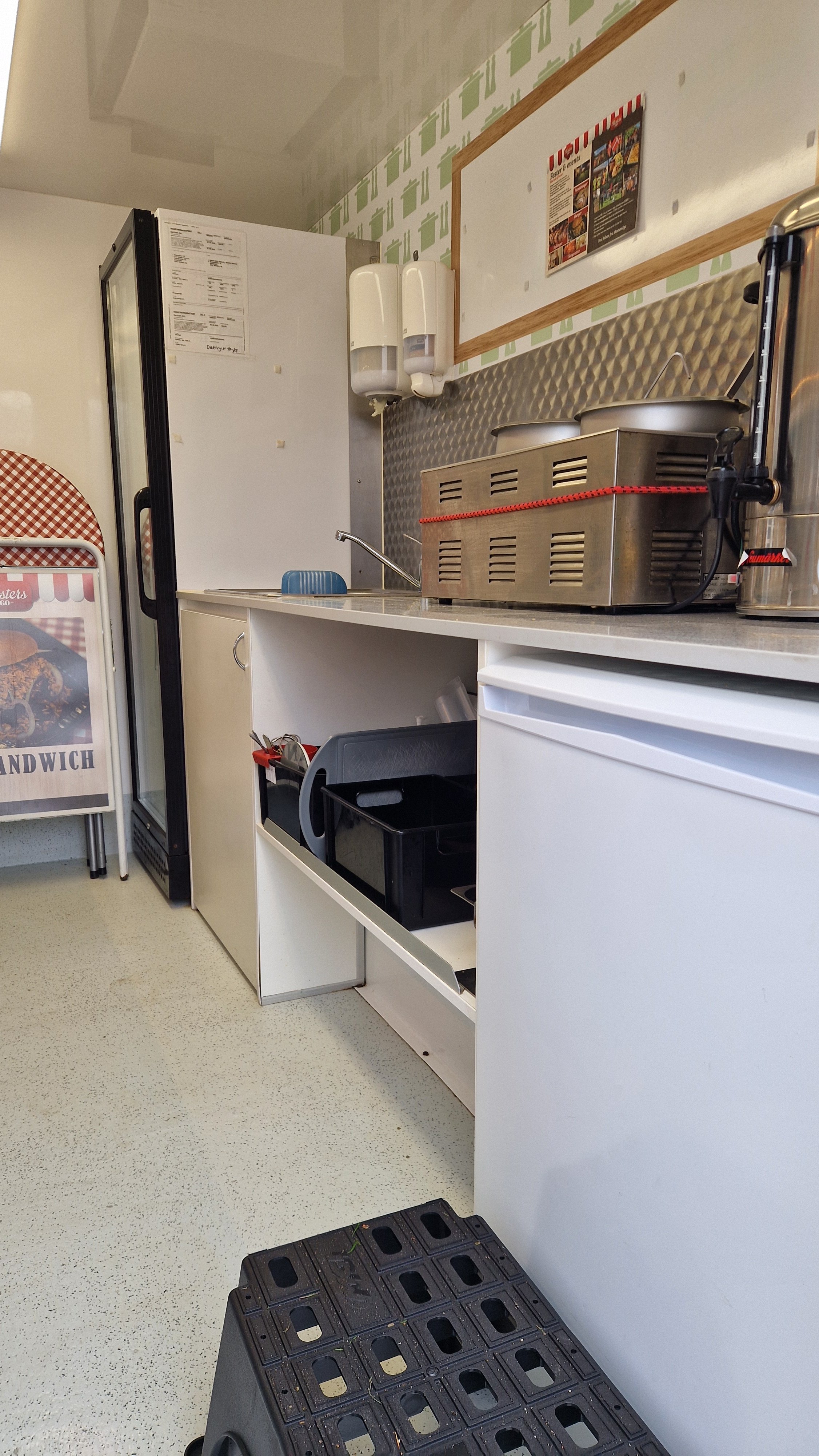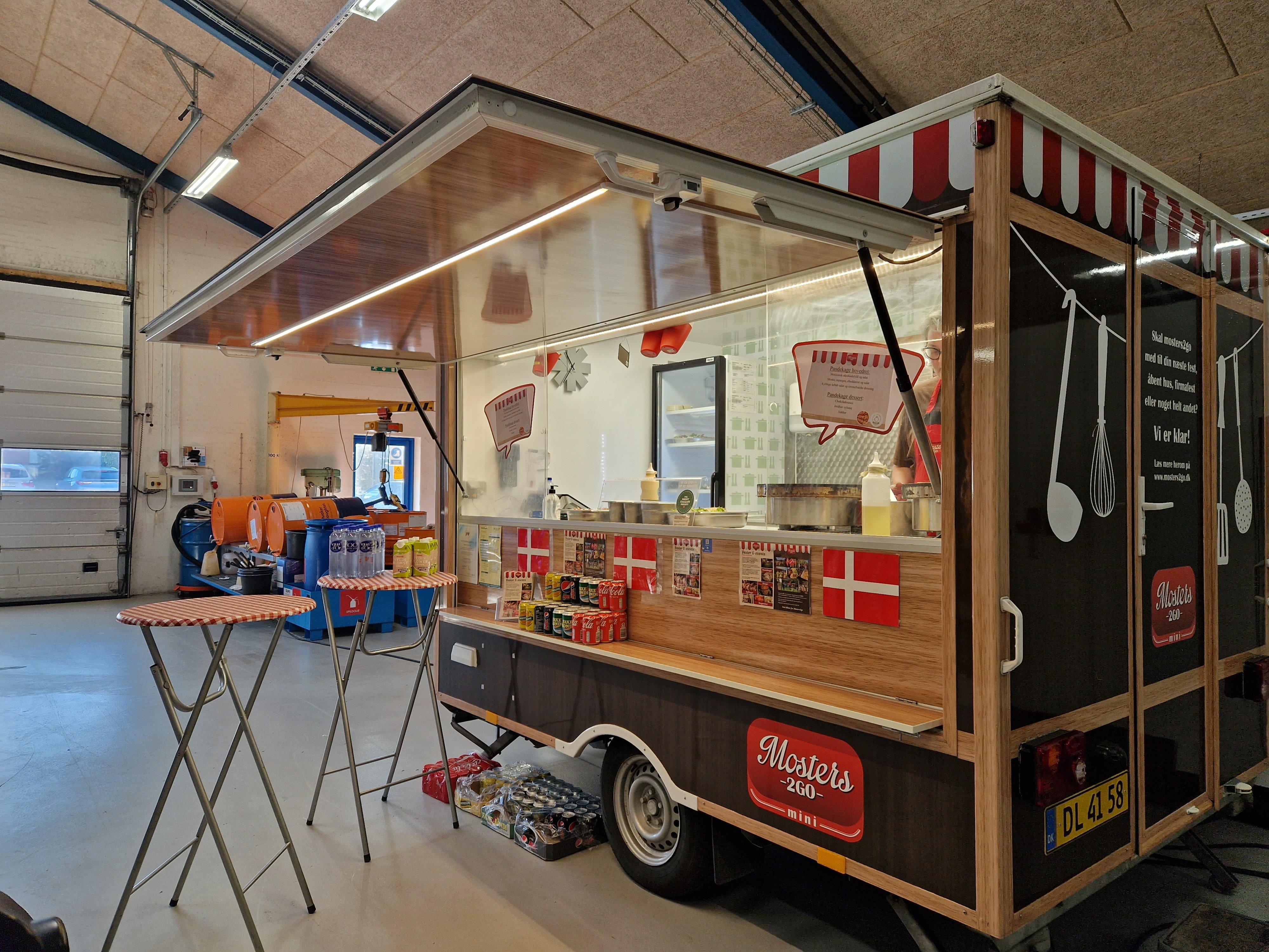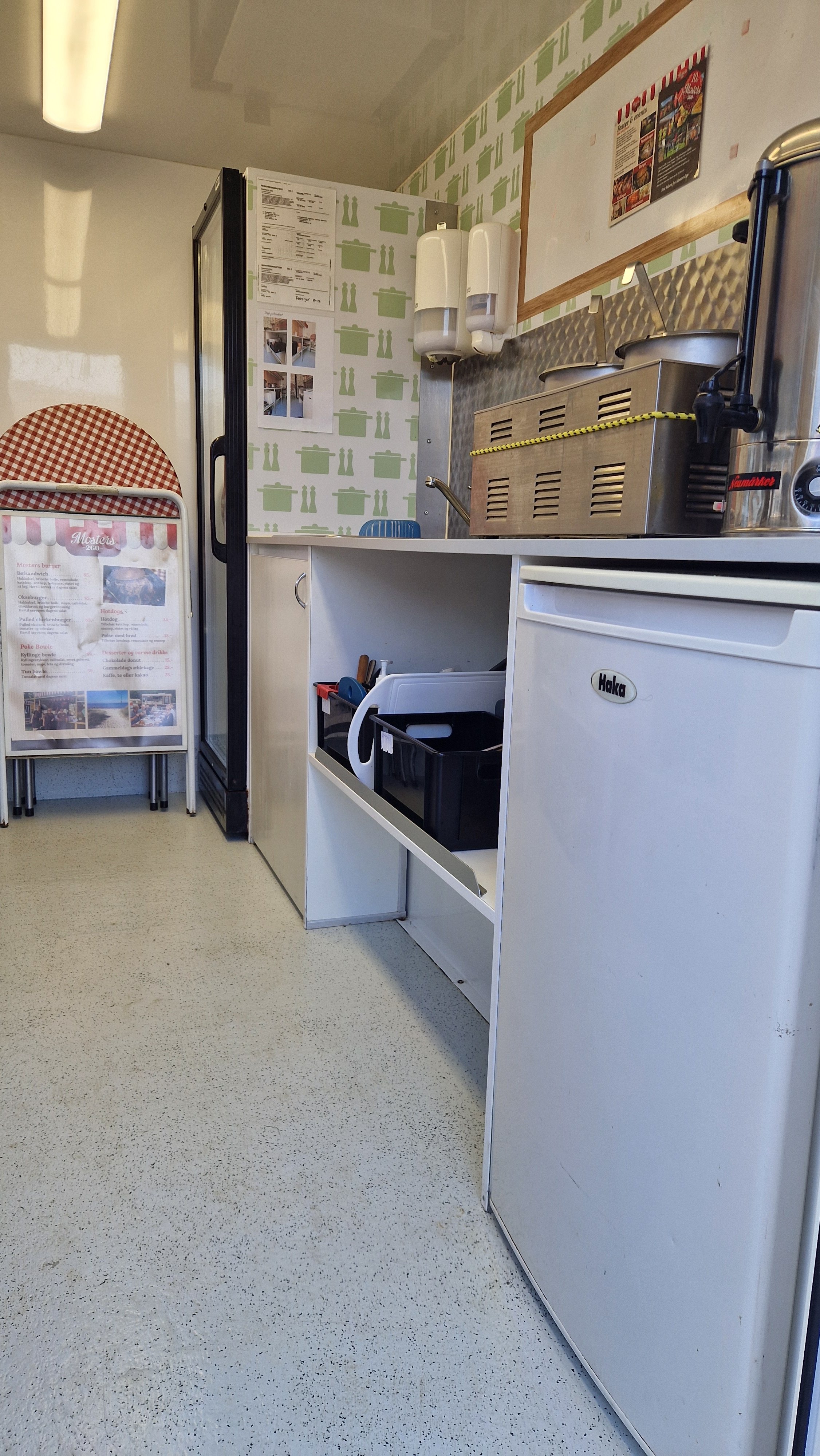 To moderne og flot folierede salgsvogne der er fuldt udstyret til salg af pandekager, burgere, poke bowl, Wraps, sandwich og drikkevarer straks fra overtagelsen. Salgsvognene er opbygget så de kan sælge flere forskellige typer mad og det medfølgende inventar skiftes hurtigt. Vognene kan omstilles til andre madkoncepter, eksempelvis catering.