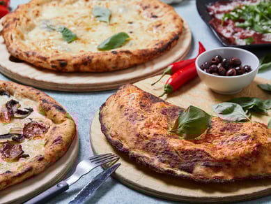 Vores pizze er inspireret af den napolitanske pizza, der har en tynd men blødere bund, som fremhæver smagen i brødet og bevarer friskheden i råvarerne (en tomat skal smage af frisk tomat og ikke kogt tomatsauce), så man har lyst til at spise hele sin pizza – også skorpen.
