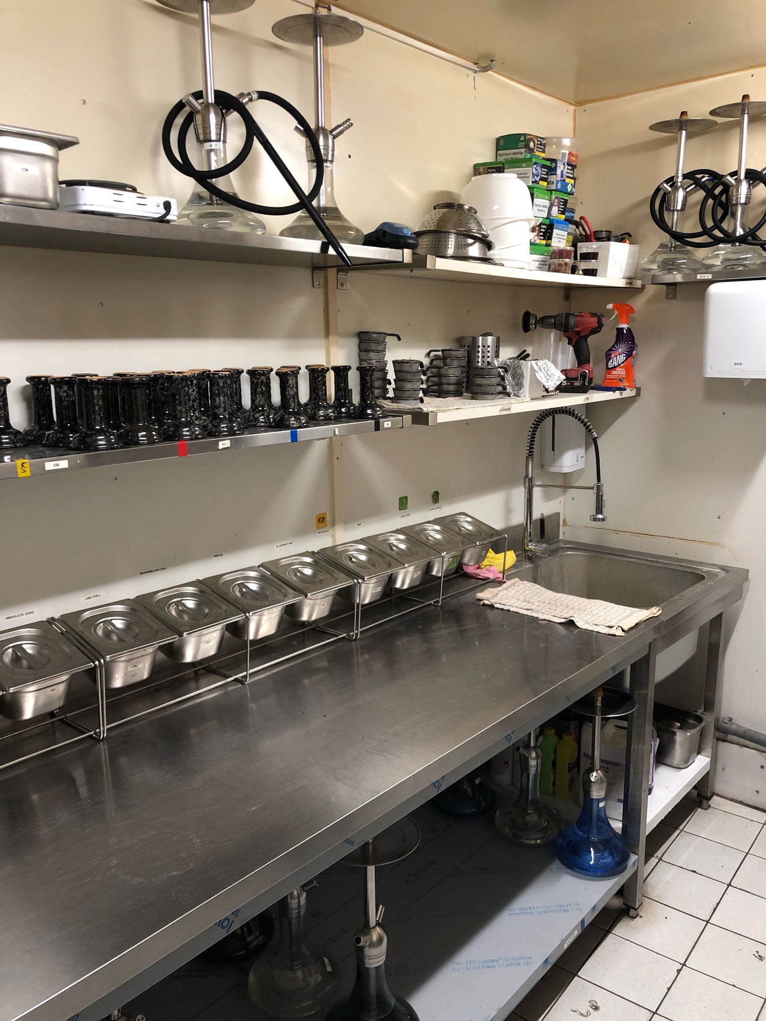 Industri espressomaskine, kaffekværn, isterningsmaskine, isterningsknuser, industri opvaskemaskine, 2 dør’s backbar køleskab, 3 dør’s backbar køleskab, 2 stor køleskab, 3 små fryser, 1 fryser, borde, lounge sofa, stole, 2x62’ tv, 4x Sonos højtaler, 50 stk’s 1 års vedligeholdte vandpiber osv.