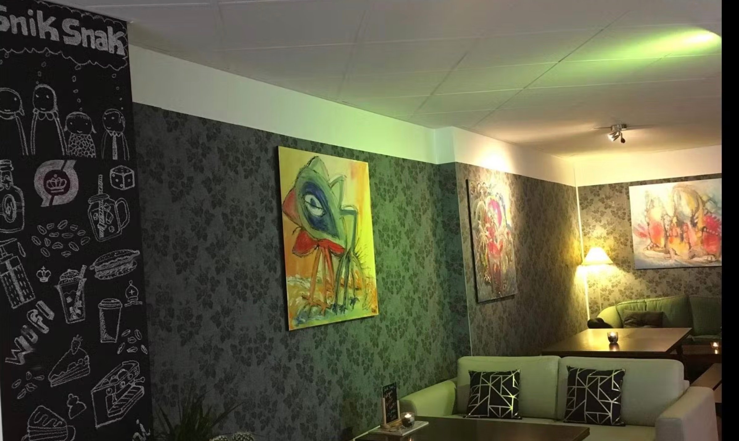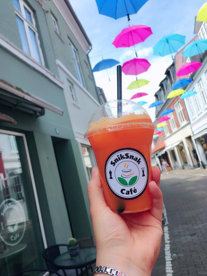 cafeen ligger i godt sted, og stor areal til kunder, vi har god smoothies, sandwich og milkshake i mod os. kan blev laver mere ting i vores cafe, Fx. bubble tea, is osv.