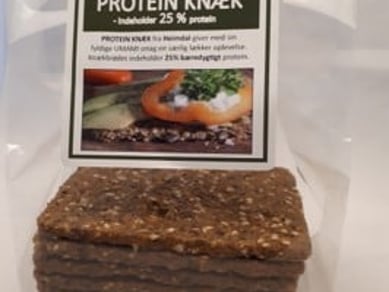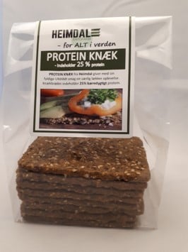 Vi producerer et Knækbrød "Proteinknæk" sammen med Knæk og Bræk Hobro. Vi har udviklet en Heimdal Bøf og er på vej med proteinberiget pasta.