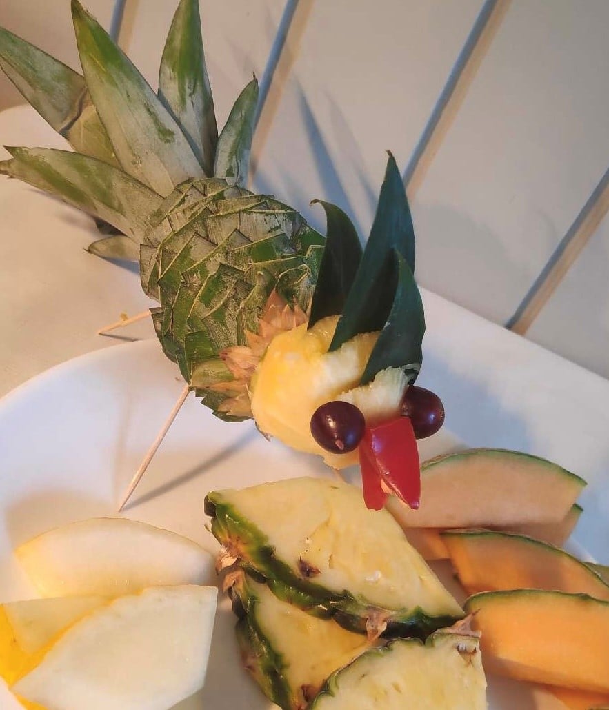 Vi tilbyder pt aftensmad som dagens ret og andre café-retter når der er højsæson og vi selv bor på stedet. Der ligger et uudnyttet potentiale i at udvide de muligheder som det fantastiske køkken og restaurant rummer. Det være sig både ift at tilbyde aftensmad og frokost samt afholde flere selskaber.