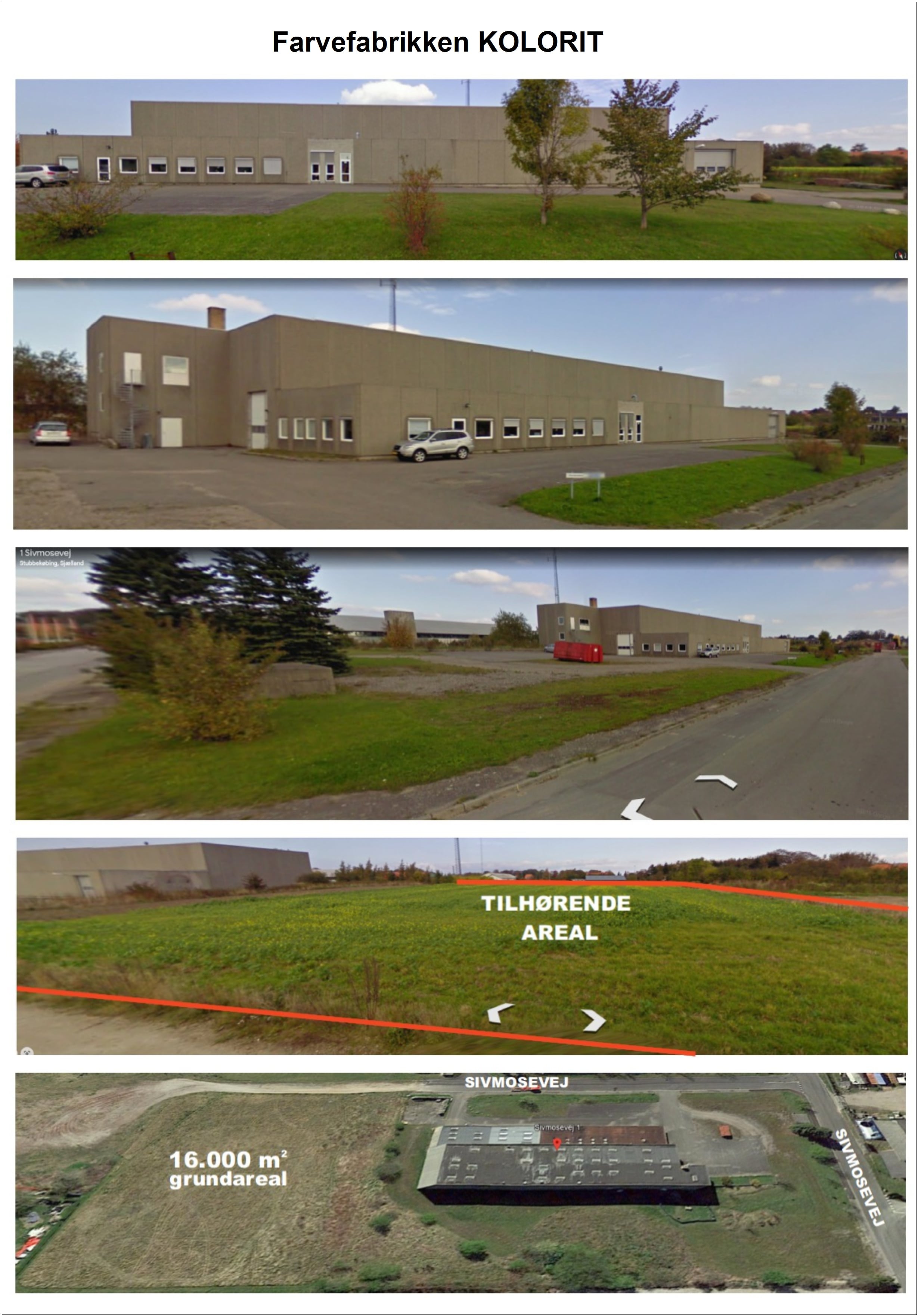Selve fabriksejendommen (2.000 m2) hører sammen med 16.000 m2 grundareal med godkendelse til at bygge yderligere 6.000 m2 fabriksbygning.
