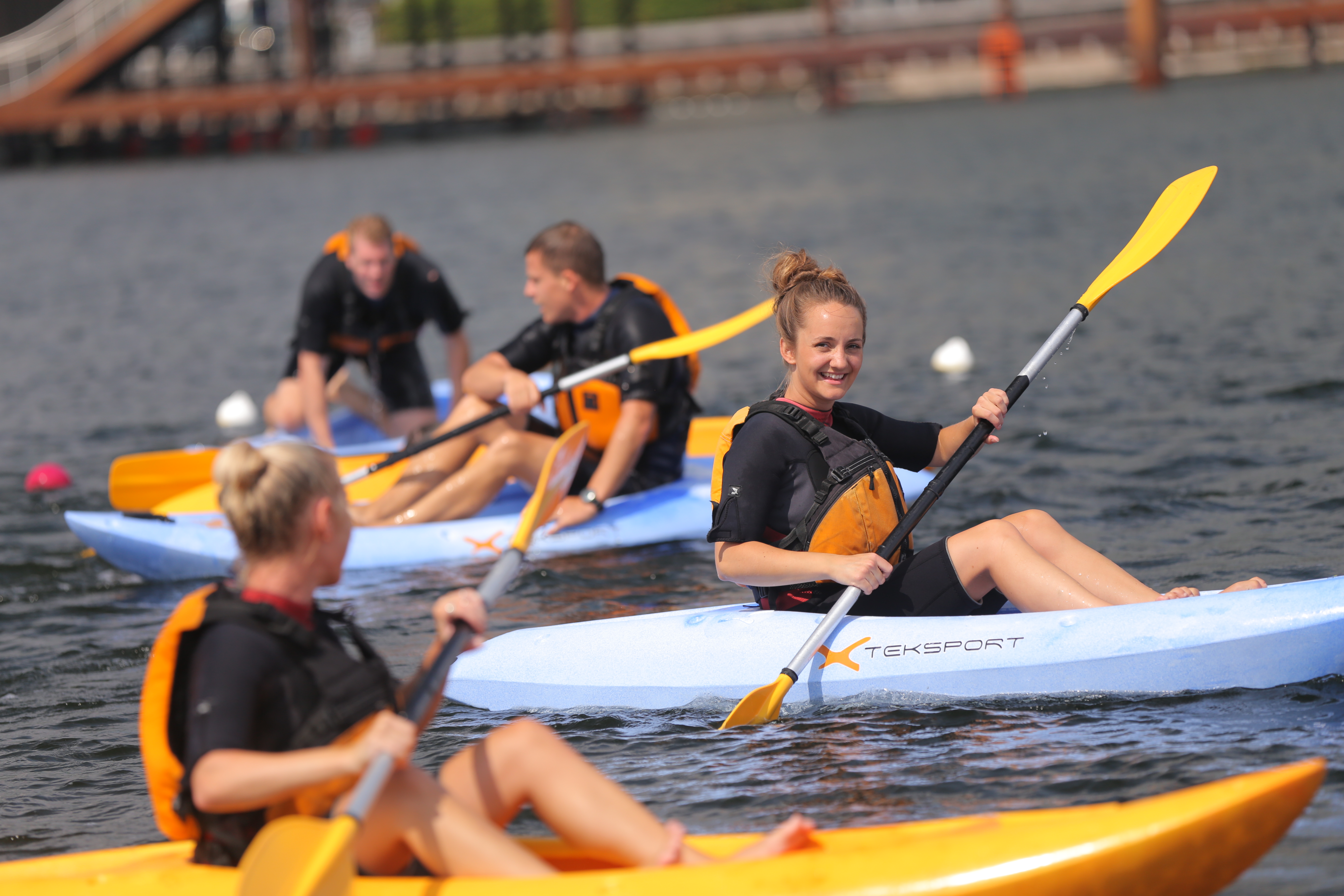 Der er taget meget hensyn til at alle skal synes det er sjovt at være med. Kajakkerne er såkaldte ”sit-on-top” kajakker, som giver bedre stabilitet i forhold til en almindelig kajak. Alle er på udebane ude på vandet, det betyder at selv en erfaren kajakroer, kan have lige så svært ved det, som en der aldrig har siddet i en kajak før.