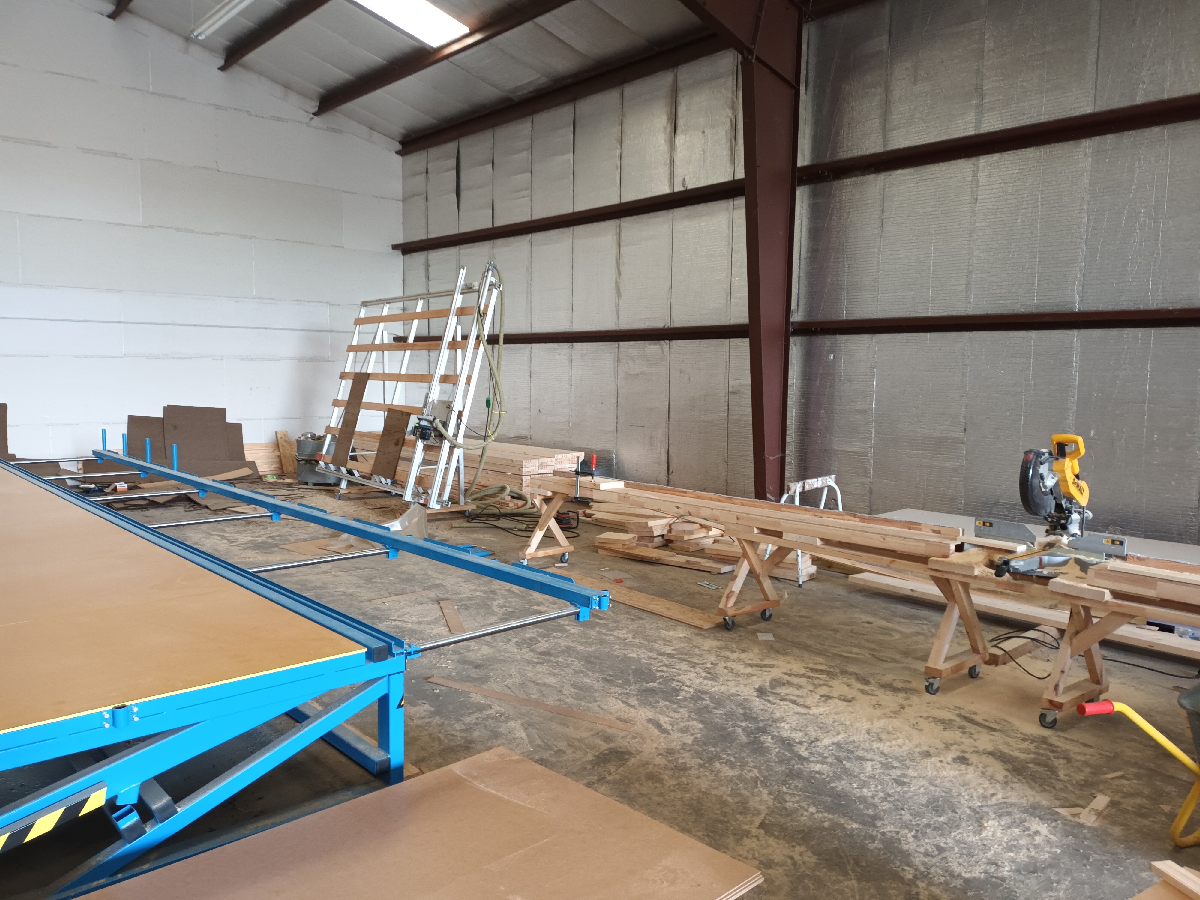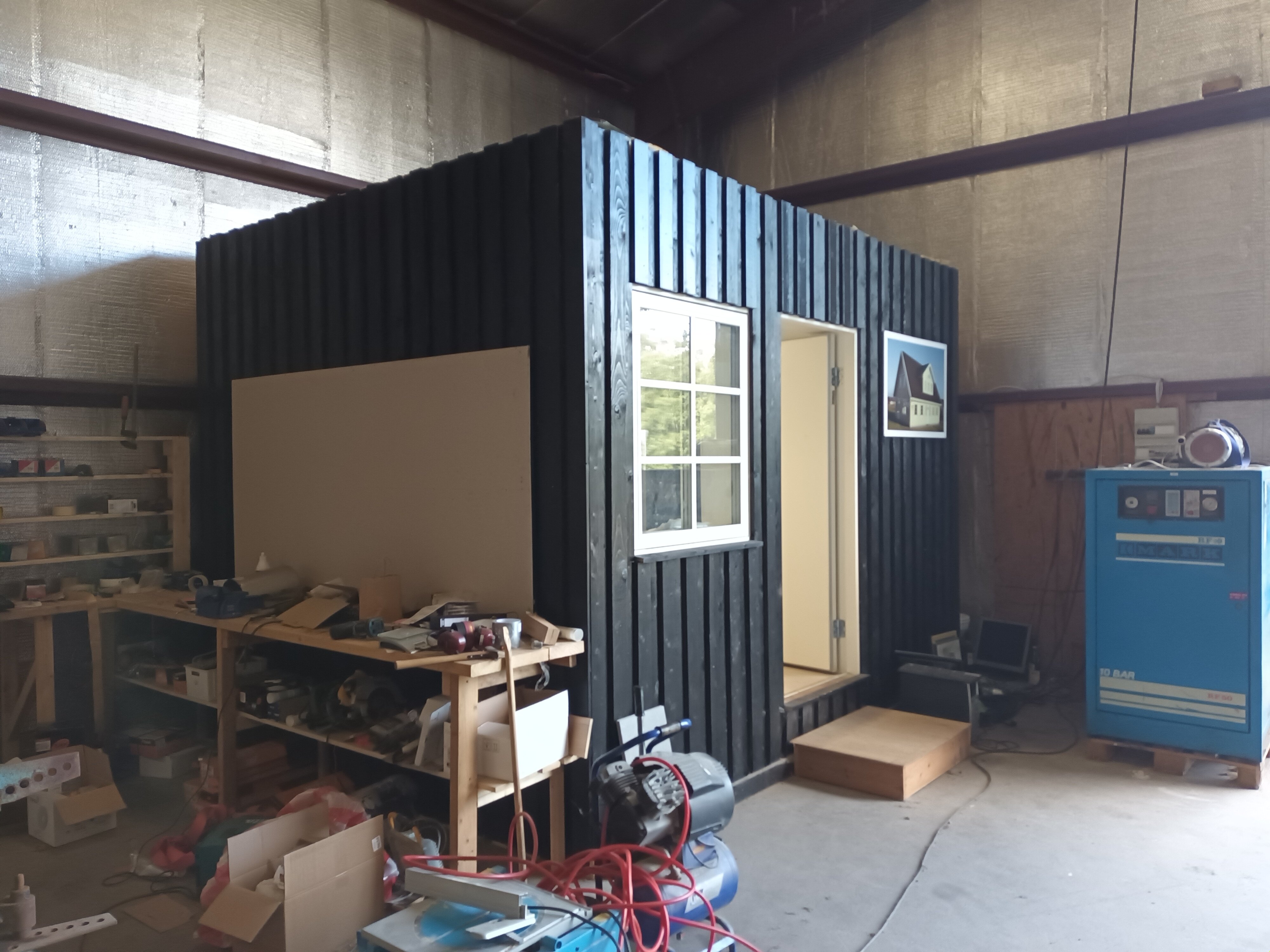Produktionen foregår i en hal på ca 500 kvm. Der er etableret kontor i bygningen med 2 arbejdspladser. Der er toilet og bruseniche, lille køleskab og mikroovn.