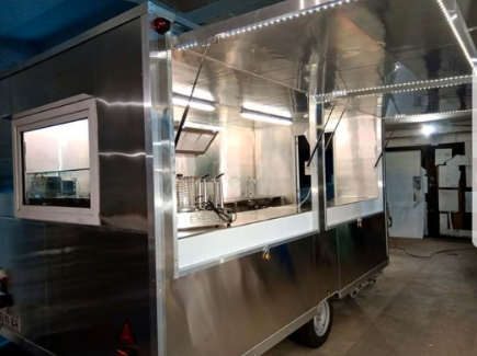 Helt ny foodtruck beklædt med folie i rustfrit aluminium til salg