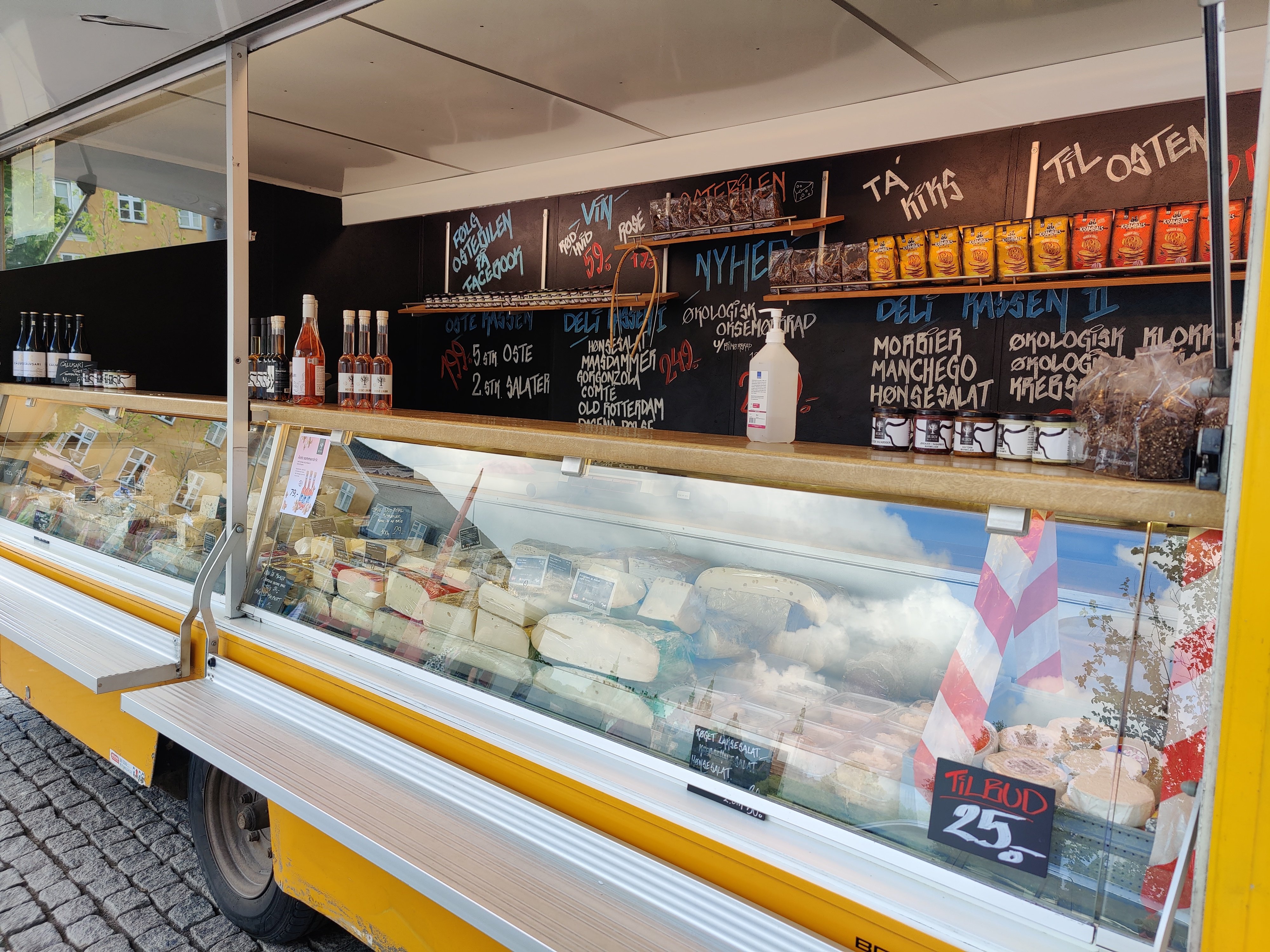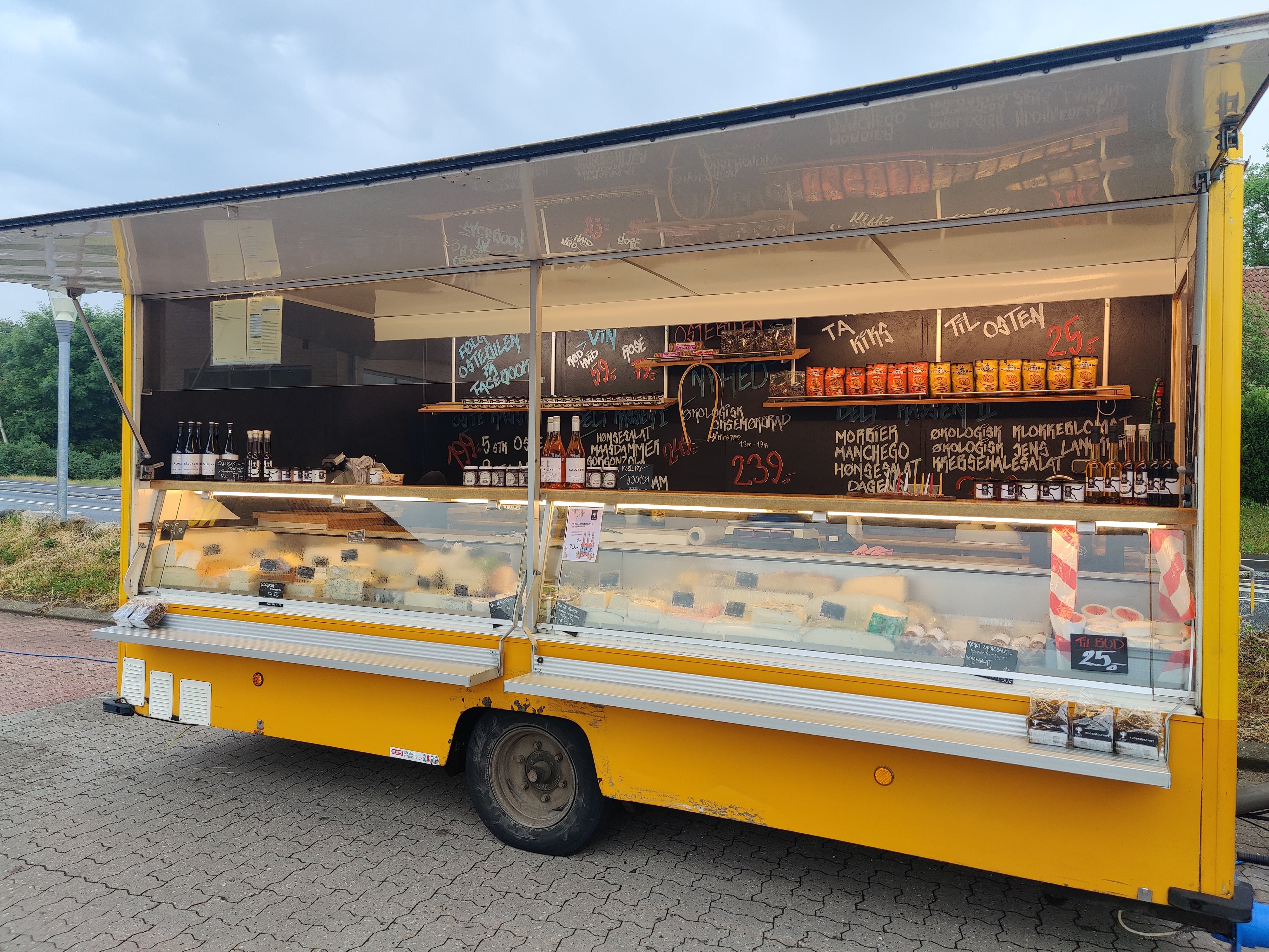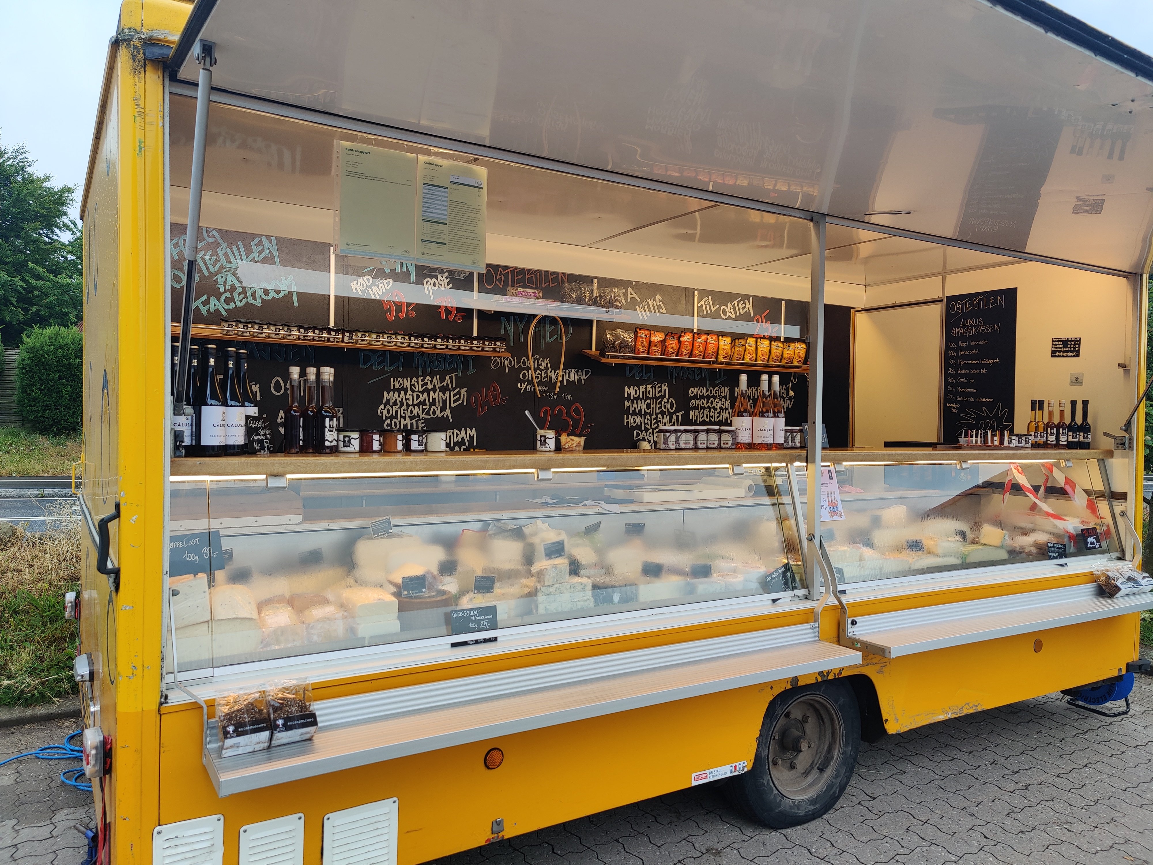 I ostebilen sælges der top kvalitet af oste, salater, pølser, vin og tilbehør til oste.
