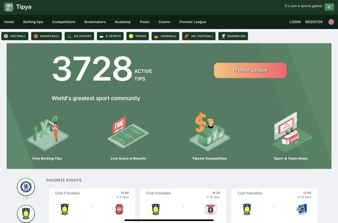 Unik mulighed for at overtage en af Danmarks største sports sider. Tipya er en free-to-play betting platform, hvor spillere kan forudse og spille tips på kampe og deltage i forskellige konkurrencer (ex. Månedens tipster, Premier League, VM osv.)
