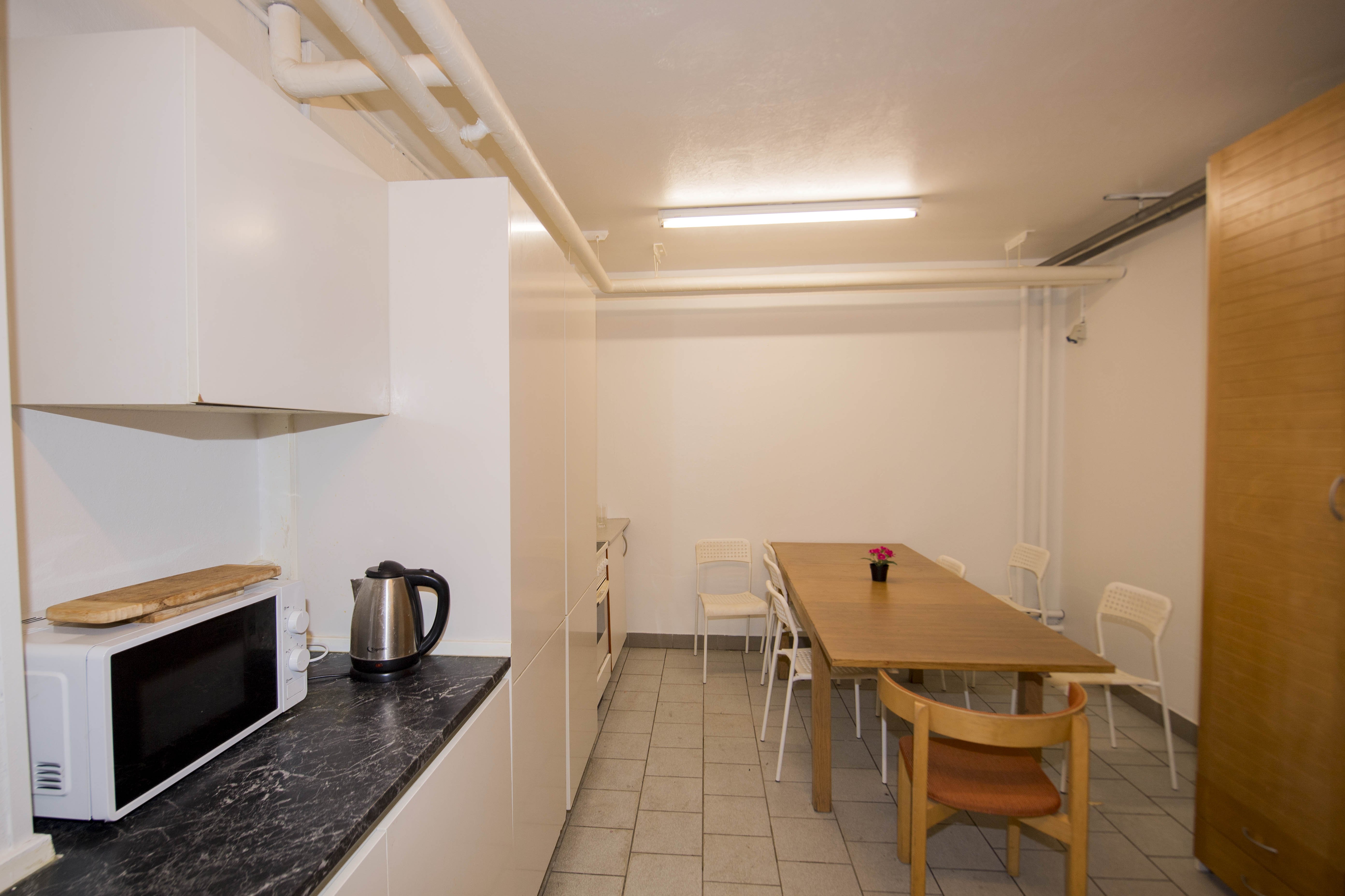Alle værelser er med eget bad og toilet, derudover er der fælleskøkken og spiserum i kælderplan.